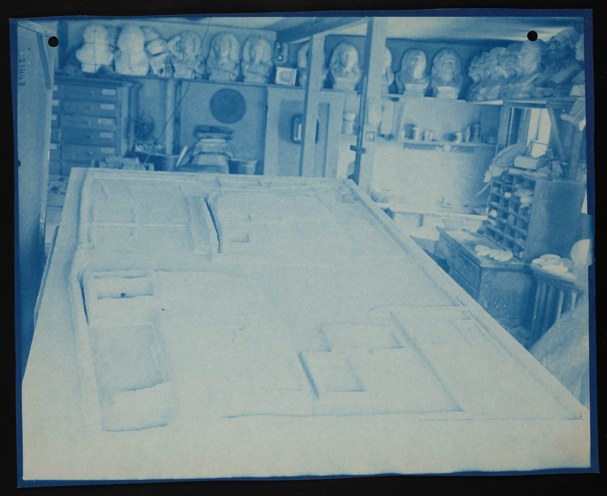 Interior view, work and storage area in the United States National Museum, now known as the Arts and Industries Building, with model of Casa Grande ruins of Arizona in view.