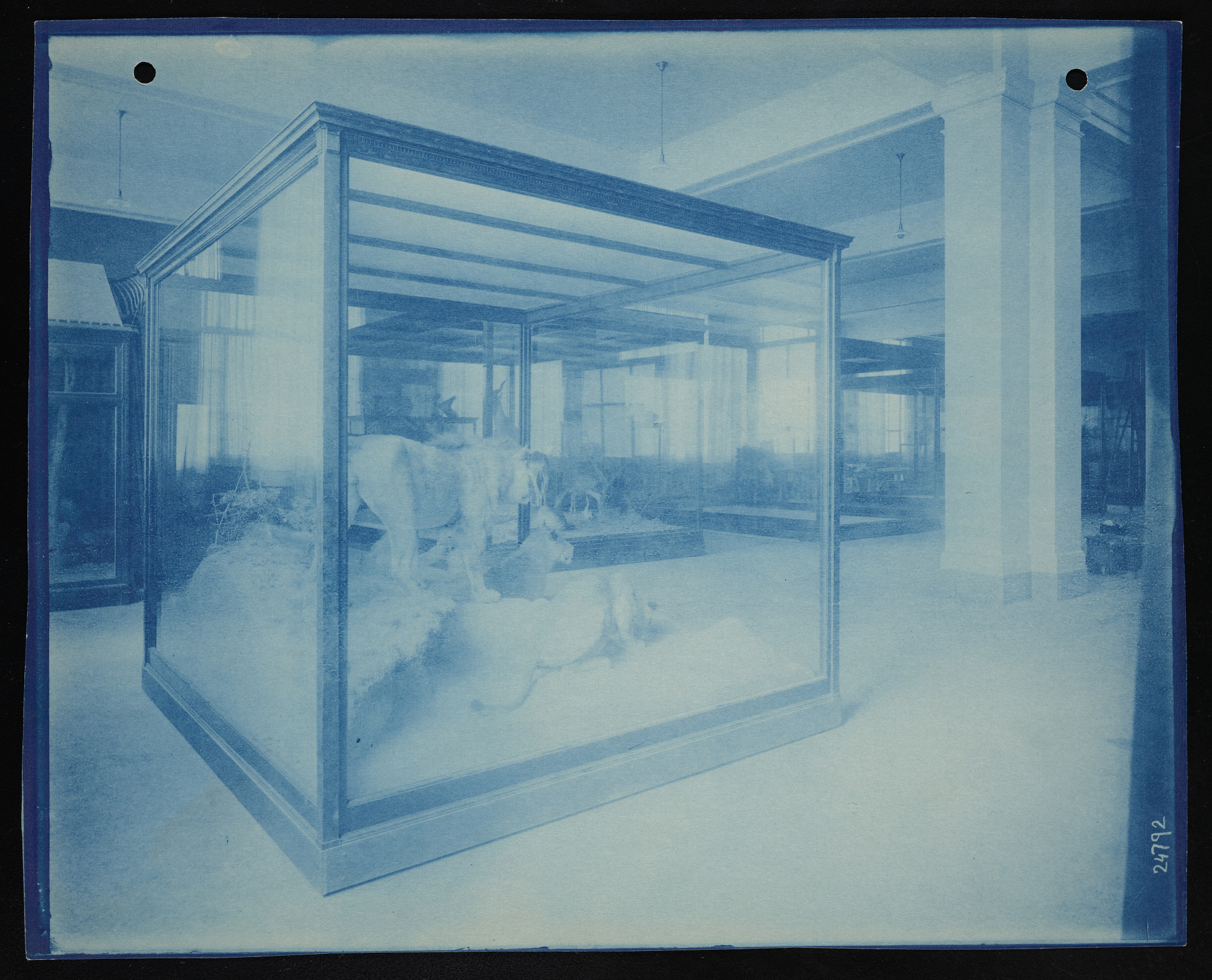 Interior view, United States National Museum African mammals exhibits in the Natural History Building, now known as the National Museum of Natural History, featuring lion group.