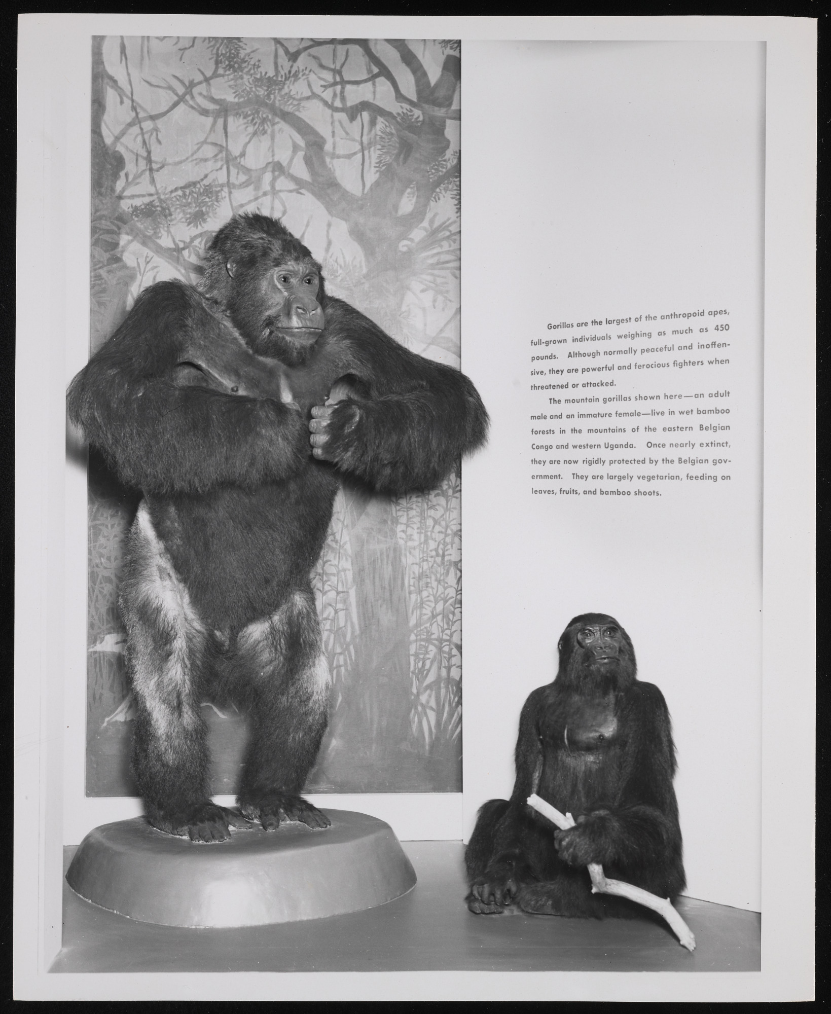 Exhibit case in World of Mammals exhibition hall at the Museum of Natural History, featuring models of mountain gorillas.