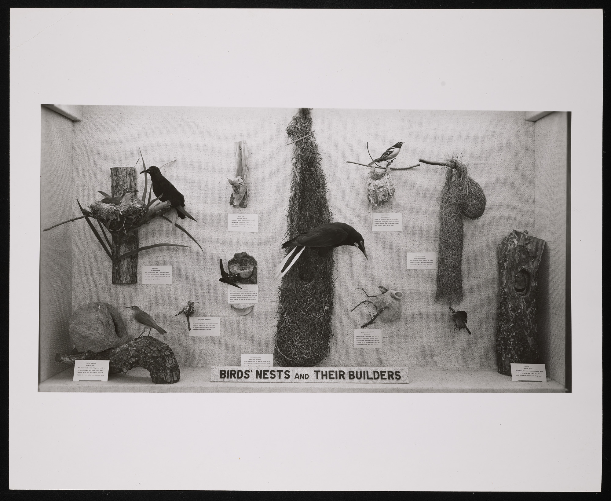 United States National Museum birds exhibit case in the Natural History Building, now known as the National Museum of Natural History, featuring "Birds' Nests and Their Builders."