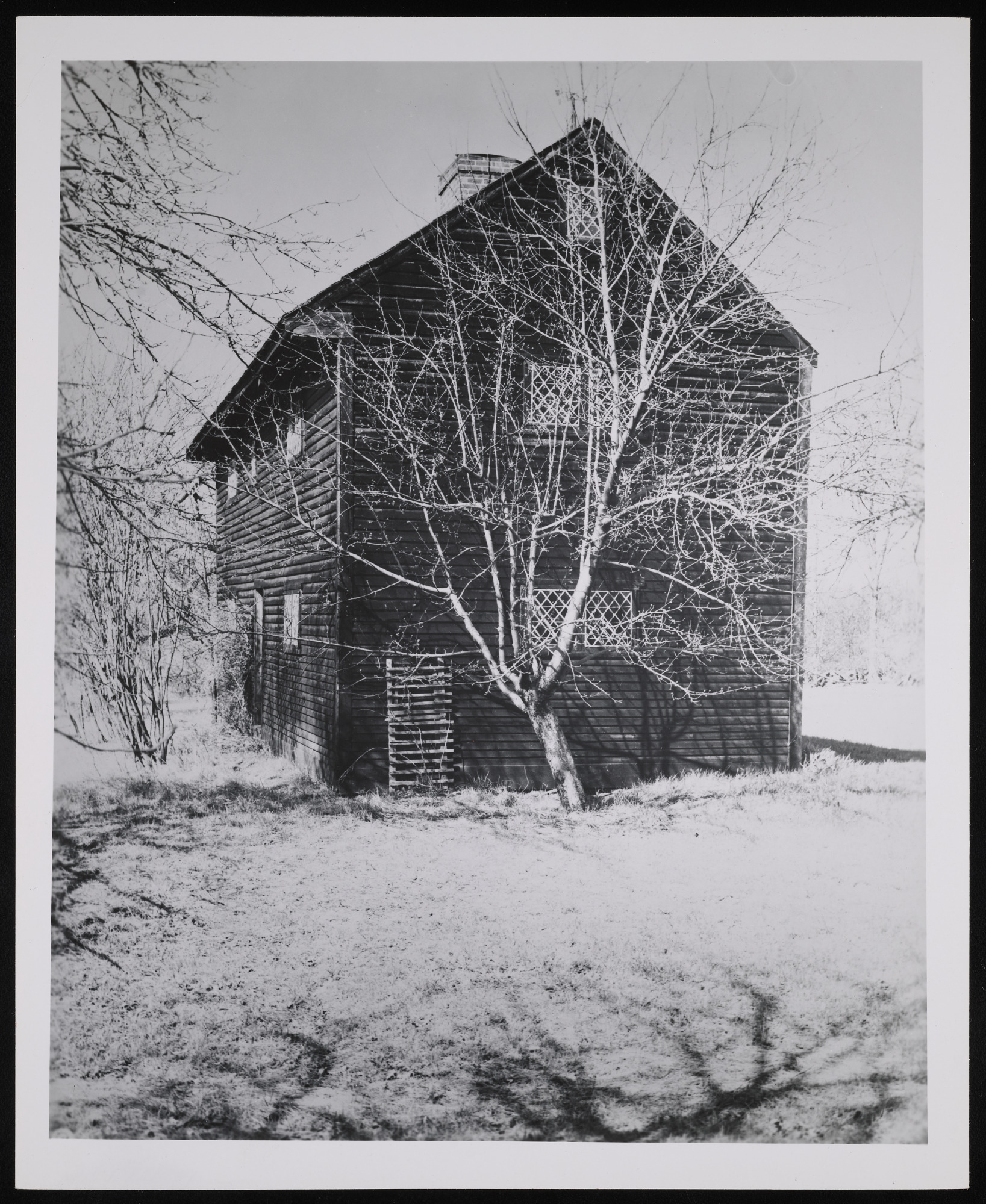 Exterior view, 17th-century Massachusetts Bay Colony house at its original location at Time Stone Farm, prior to its move to Hall of Everyday Life in Early America in Hall 26 of the Museum of Natural History.