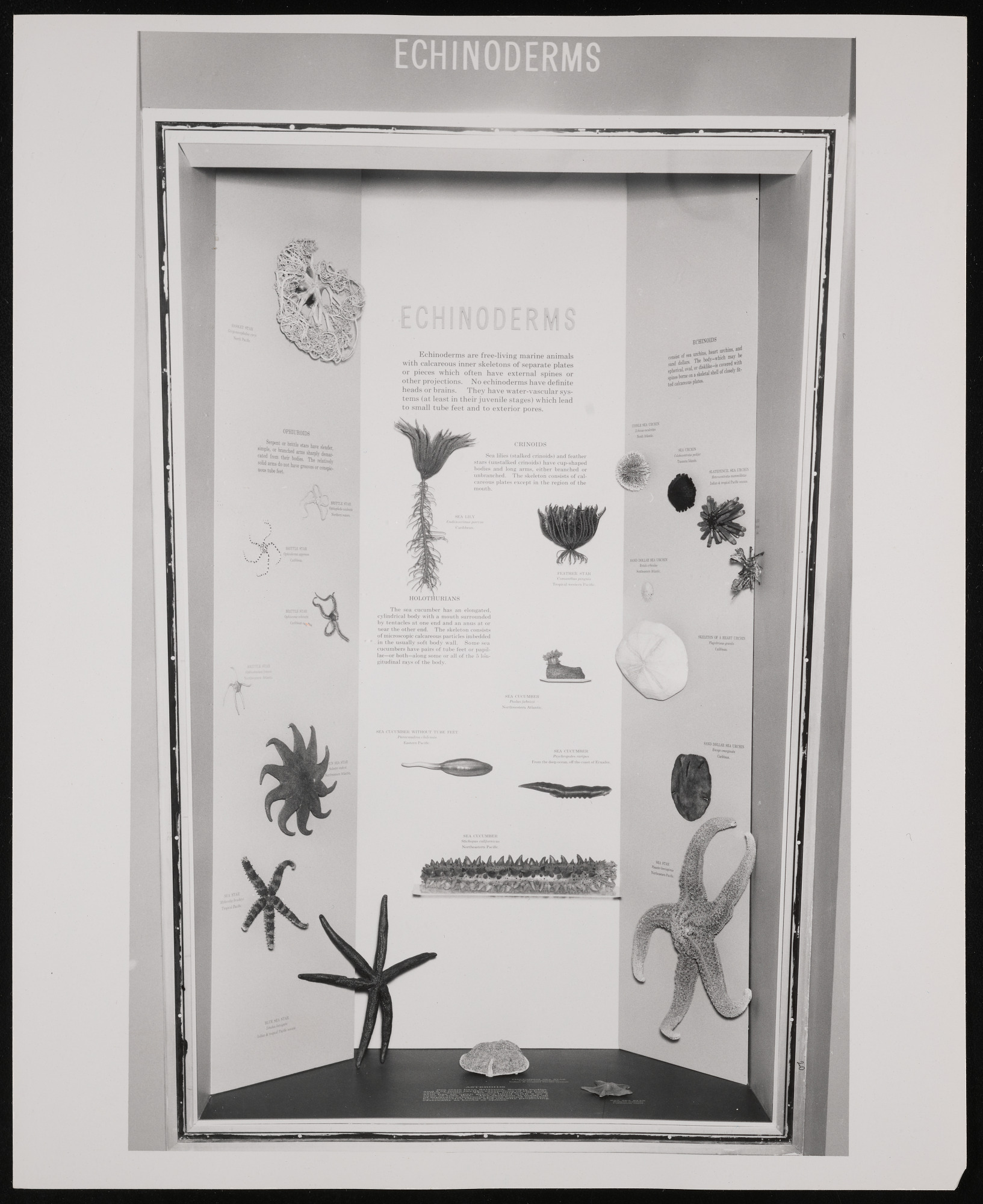 Exhibit case in Hall of Life in the Sea at Museum of Natural History, featuring "Echinoderms."
