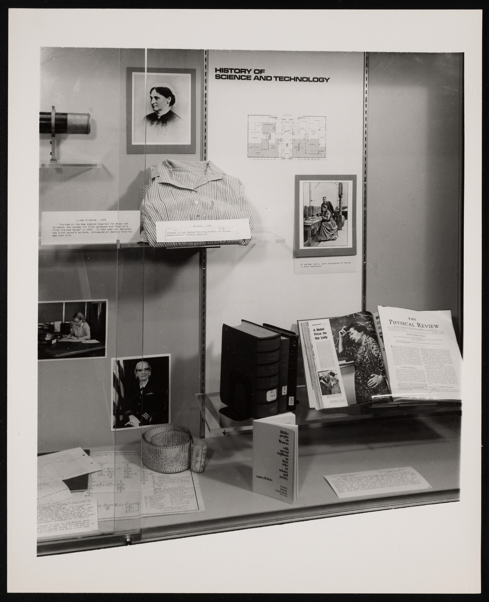 Monthly exhibit case in the lobby of National Museum of History and Technology, now known as National Museum of American History, in observation of SI Women's Week, featuring women in science.