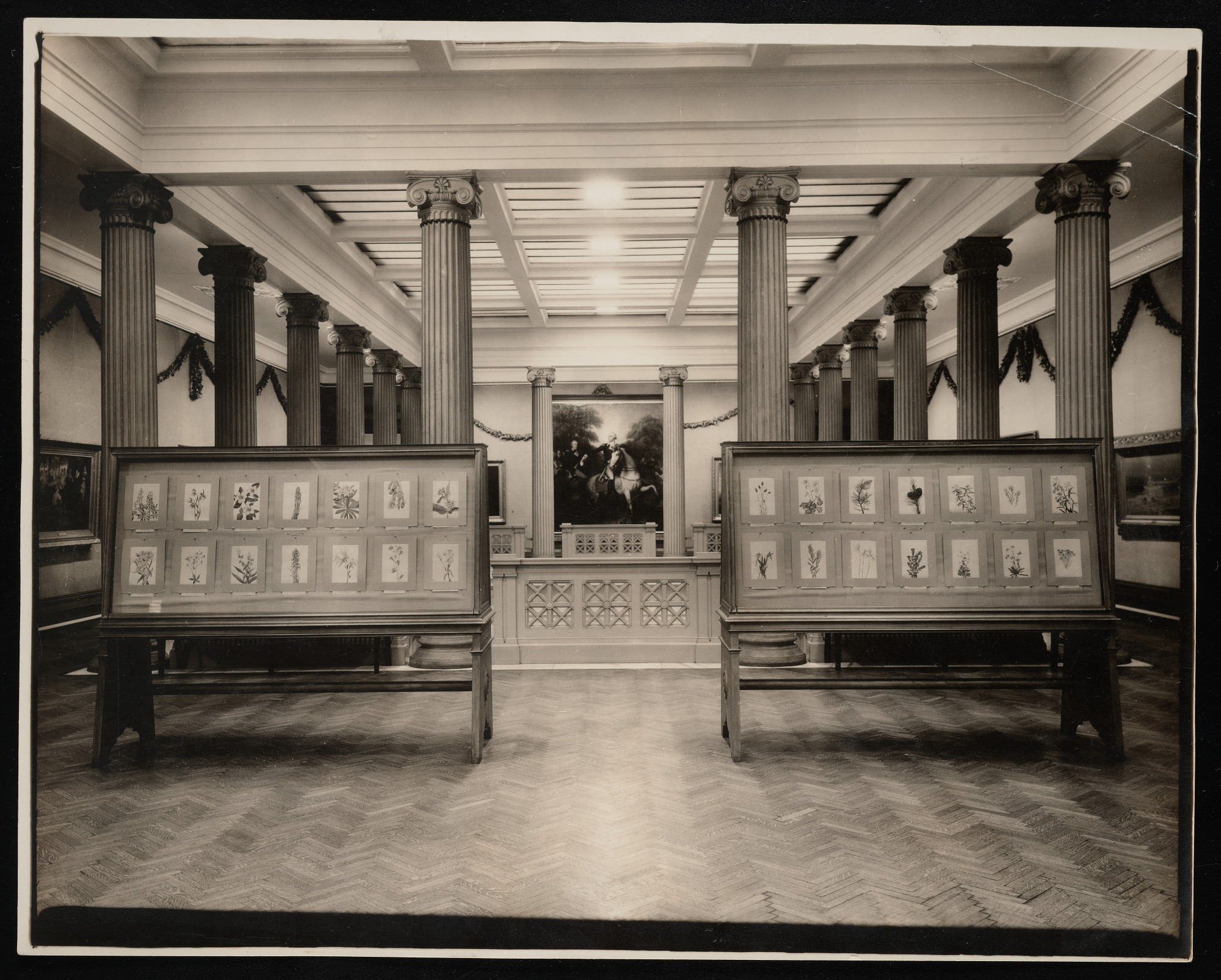 Interior view, National Collection of Fine Arts special exhibition of watercolor sketches of wild flowers by Mary Vaux Walcott at Corcoran Gallery of Art.