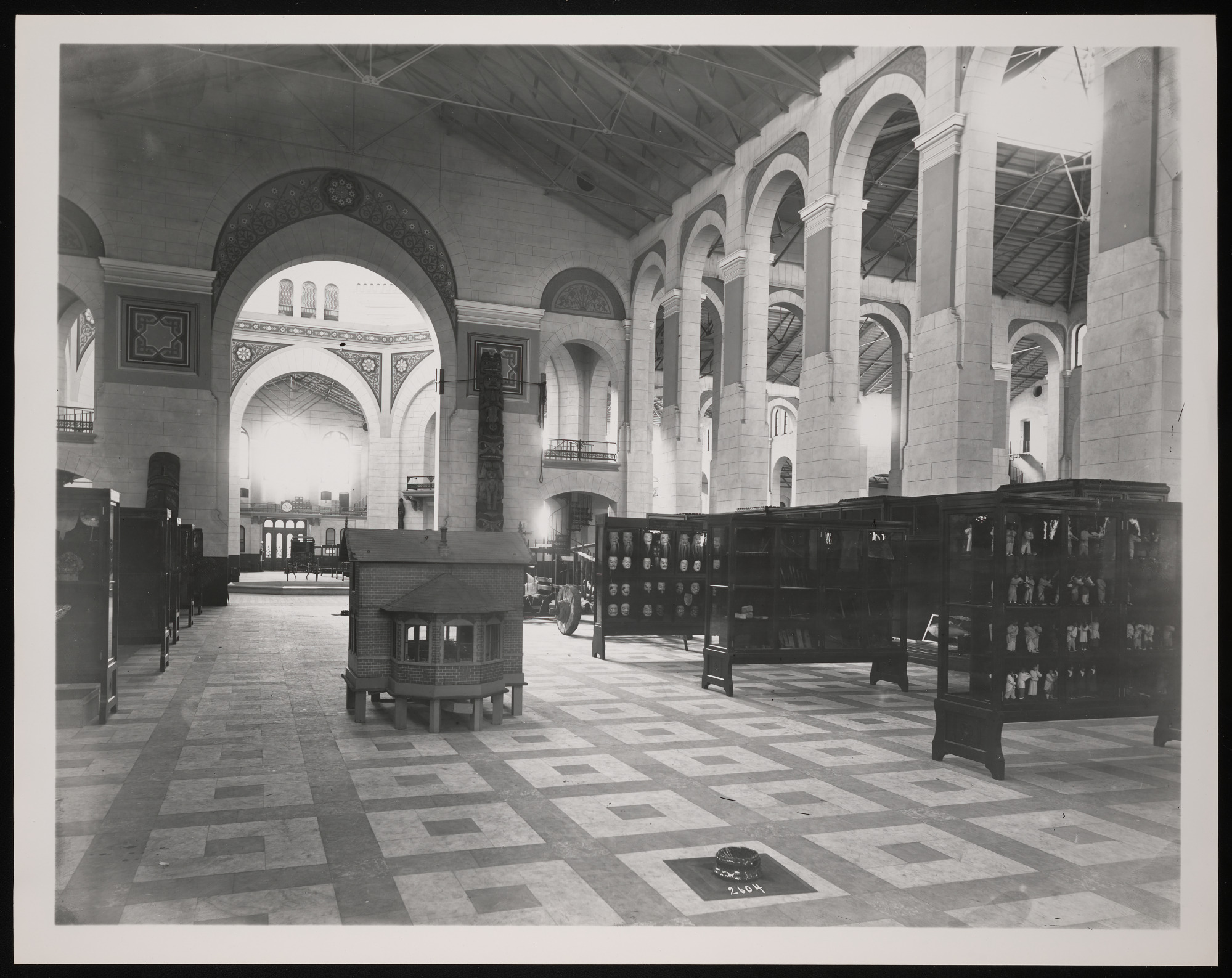Interior view, ethnology exhibits in the United States National Museum, now known as the Arts and Industries Building.