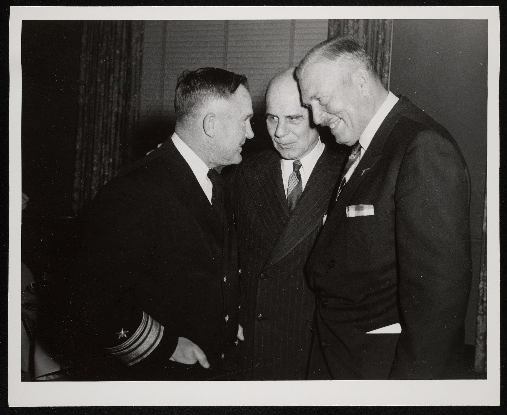 Presentation of bust of aviation pioneer General James "Jimmy" Doolittle sculptured by Suzanne Silvercruys Stevenson, a gift of Shell Oil Company to the National Air Museum, during ceremony at Washington Hotel, with Jimmy Doolittle (center) and aviator Roscoe Turner (right).