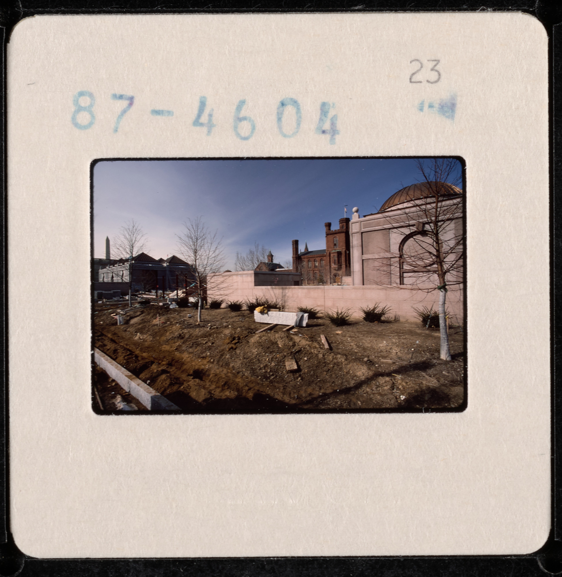 Smithsonian Institution Building, or Castle, entrance pavilion for National Museum of African Art, and entrance pavilion for Arthur M. Sackler Gallery in view.