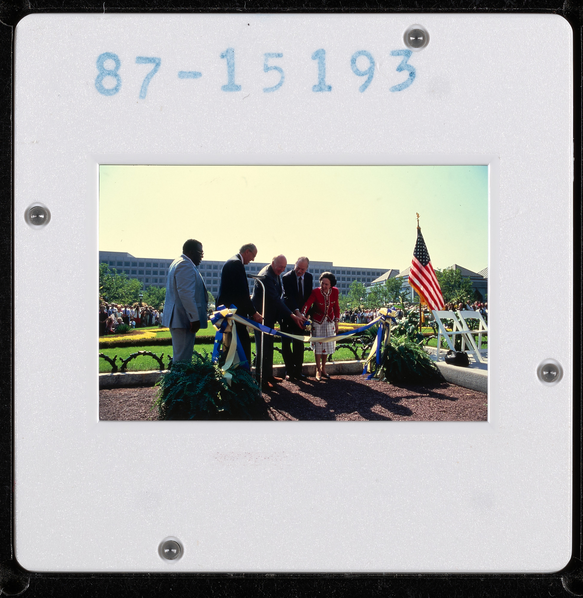 With John R. Kinard, director of Anacostia Museum; Jean Paul Carlhian, architect and principal designer of the Quadrangle museum complex; S. Dillon Ripley, former Smithsonian secretary; Secretary Robert McCormick Adams; and Anne L. Armstrong, Smithsonian regent.