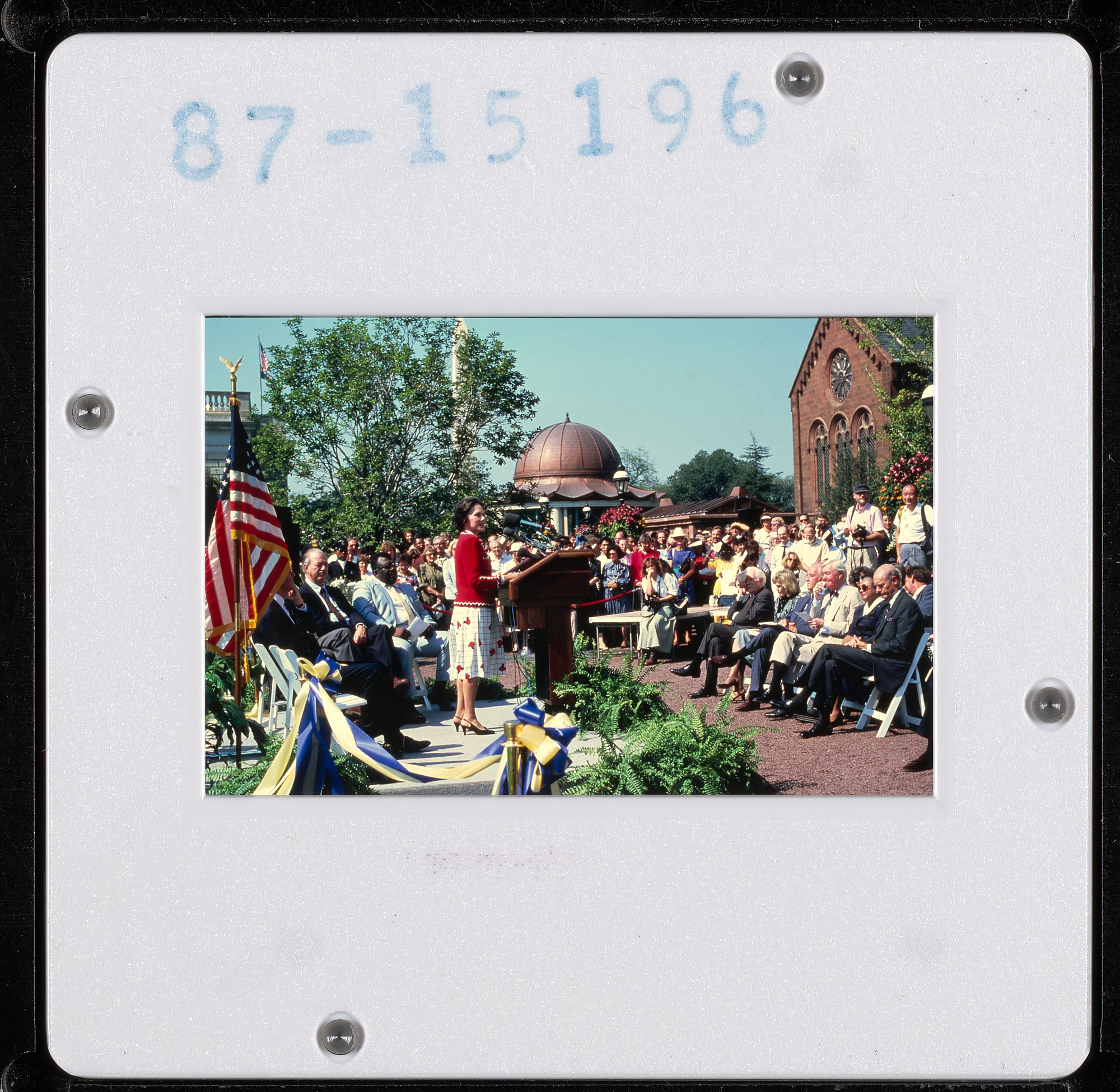 With Anne L. Armstrong, Smithsonian regent, at podium; Secretary Robert McCormick Adams, seated; and John R. Kinard, director of Anacostia Museum, seated.