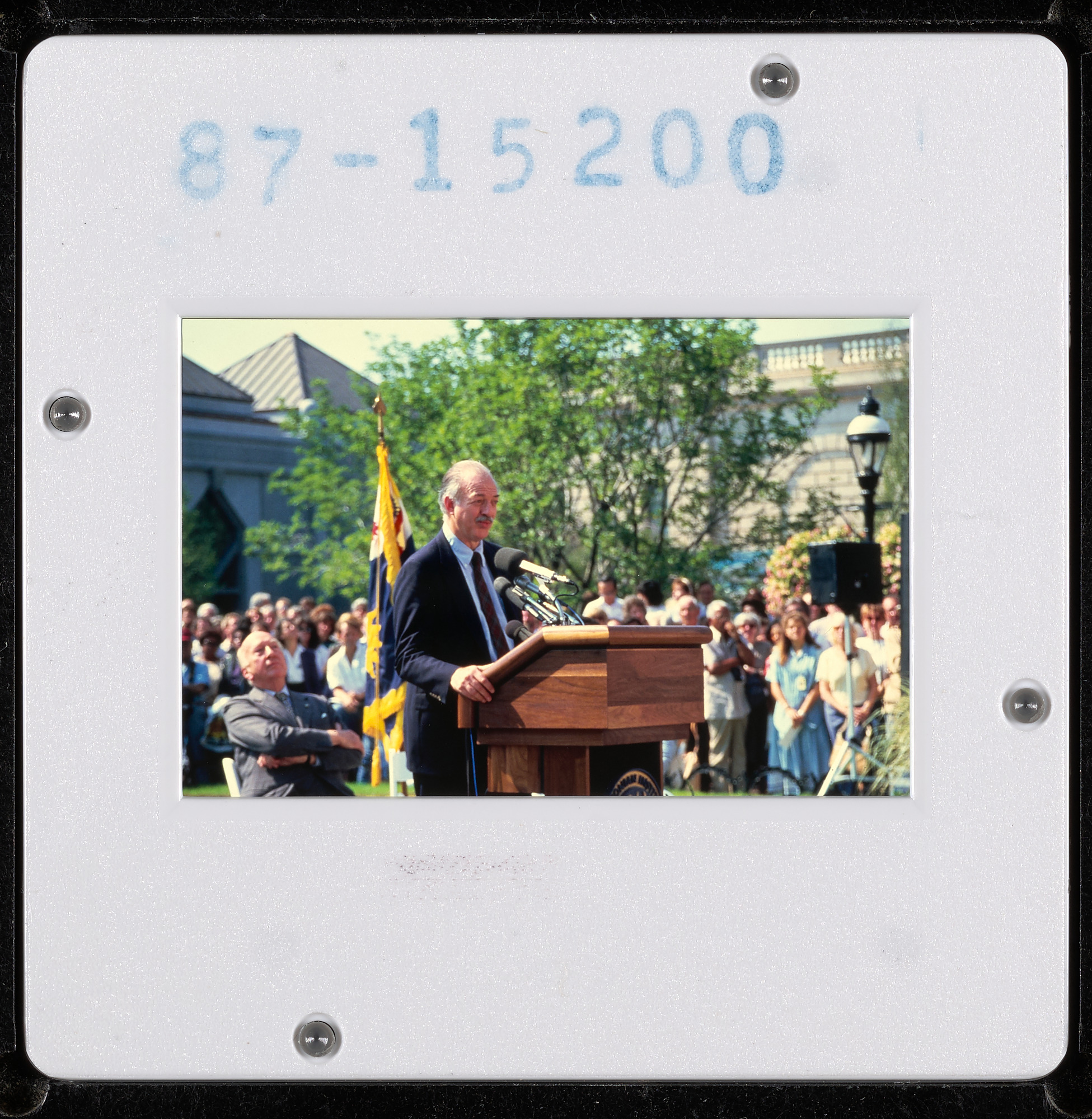 With Secretary Robert McCormick Adams, at podium, and S. Dillon Ripley, former Smithsonian secretary.