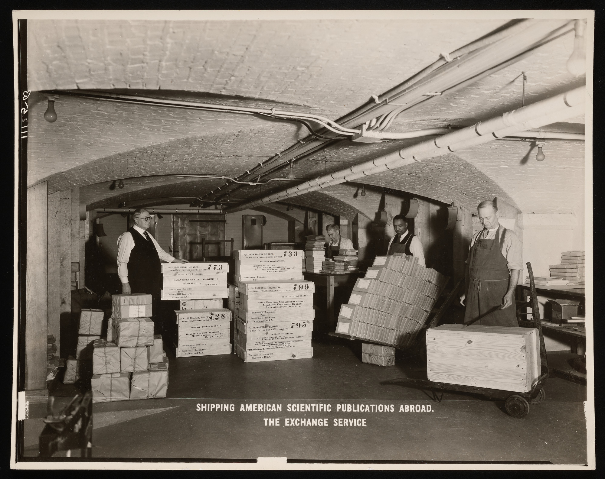Interior view, International Exchange Service in the basement of the East Wing of the Smithsonian Institution Building, or Castle.