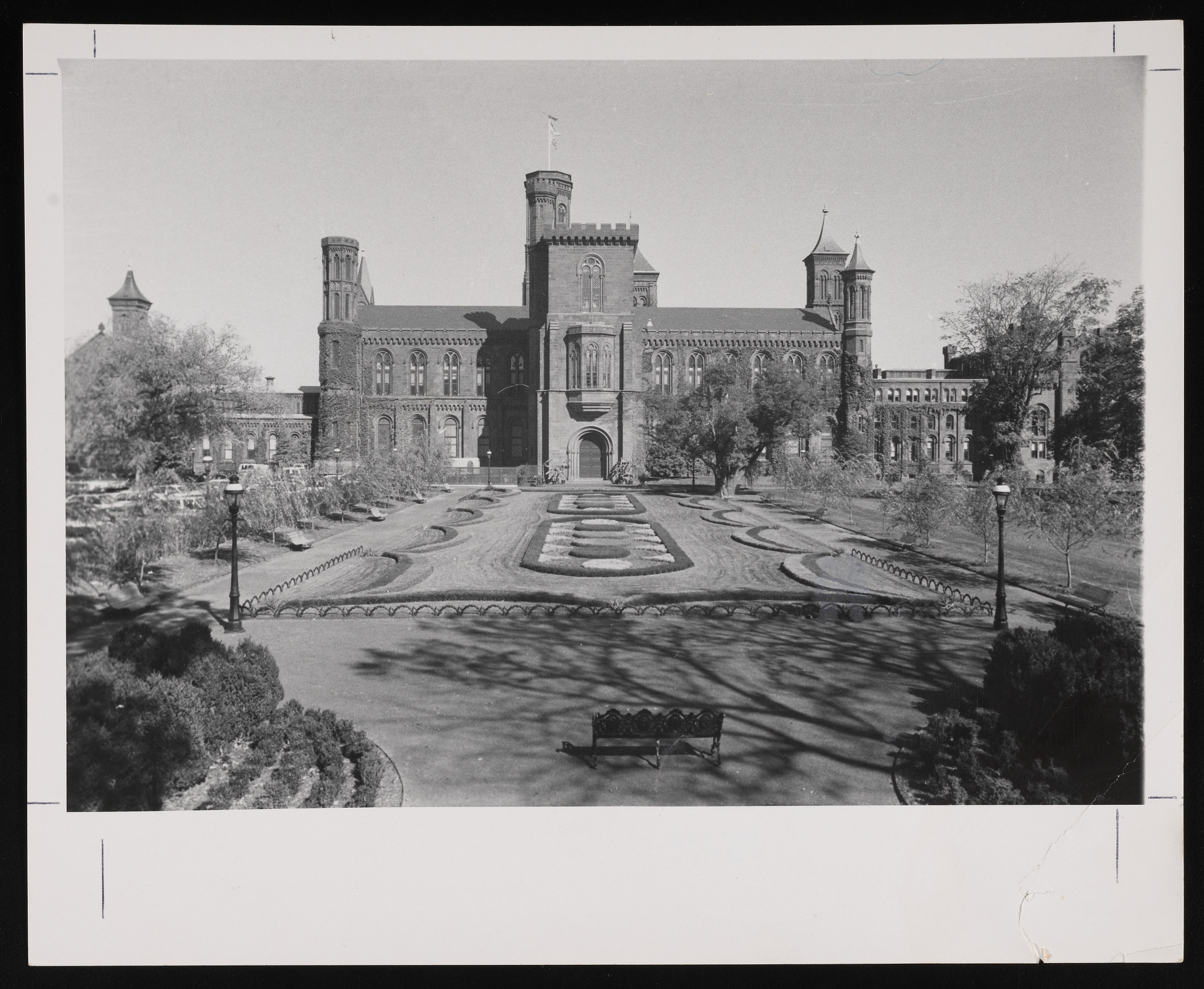 Exterior View of the Smithsonian Institution Building, or Castle, with Victorian Garden