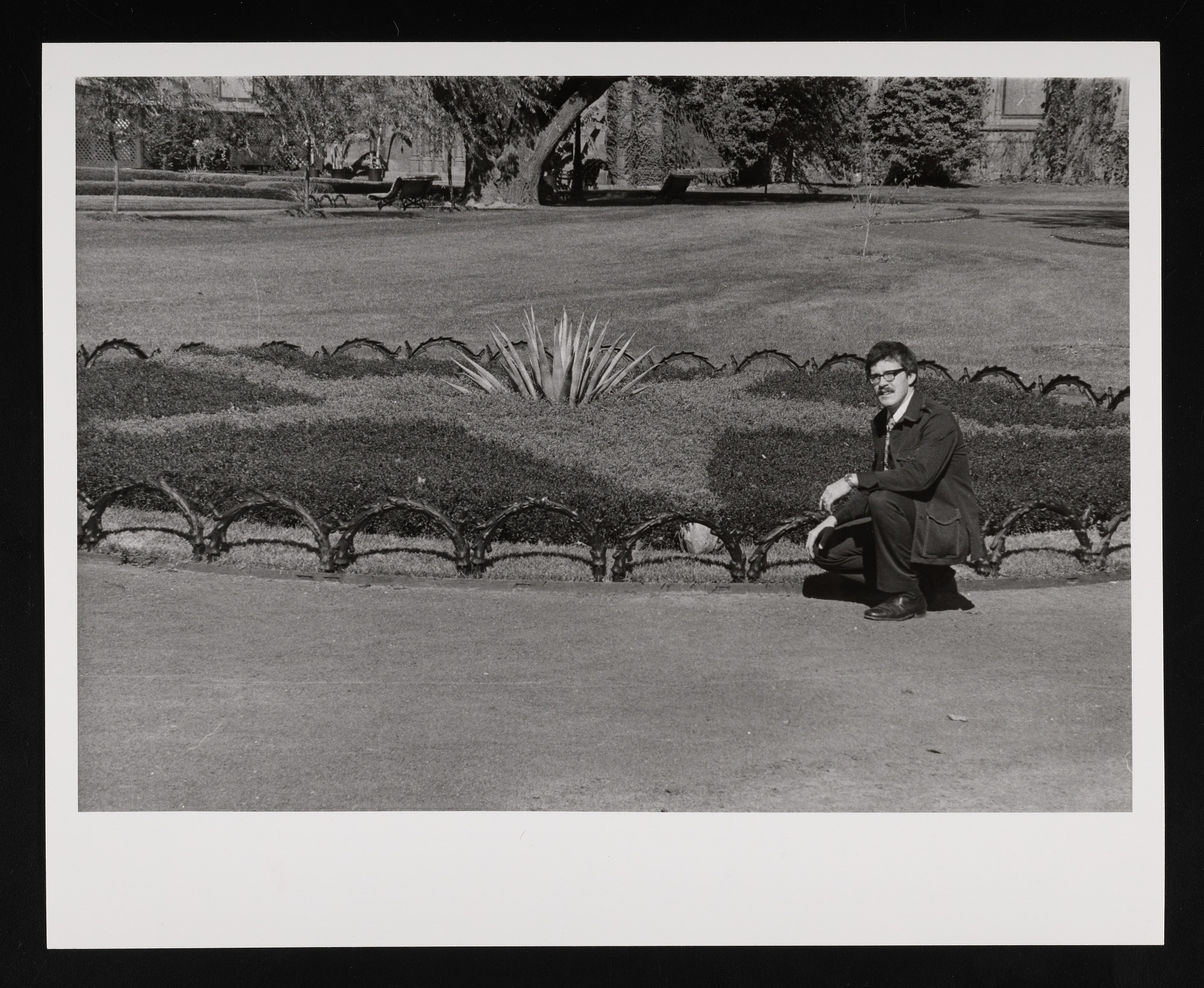 James R. Buckler, chief of the Office of Horticulture, poses in the Victorian Garden in the South Yard of the Smithsonian Institution Building, or Castle.