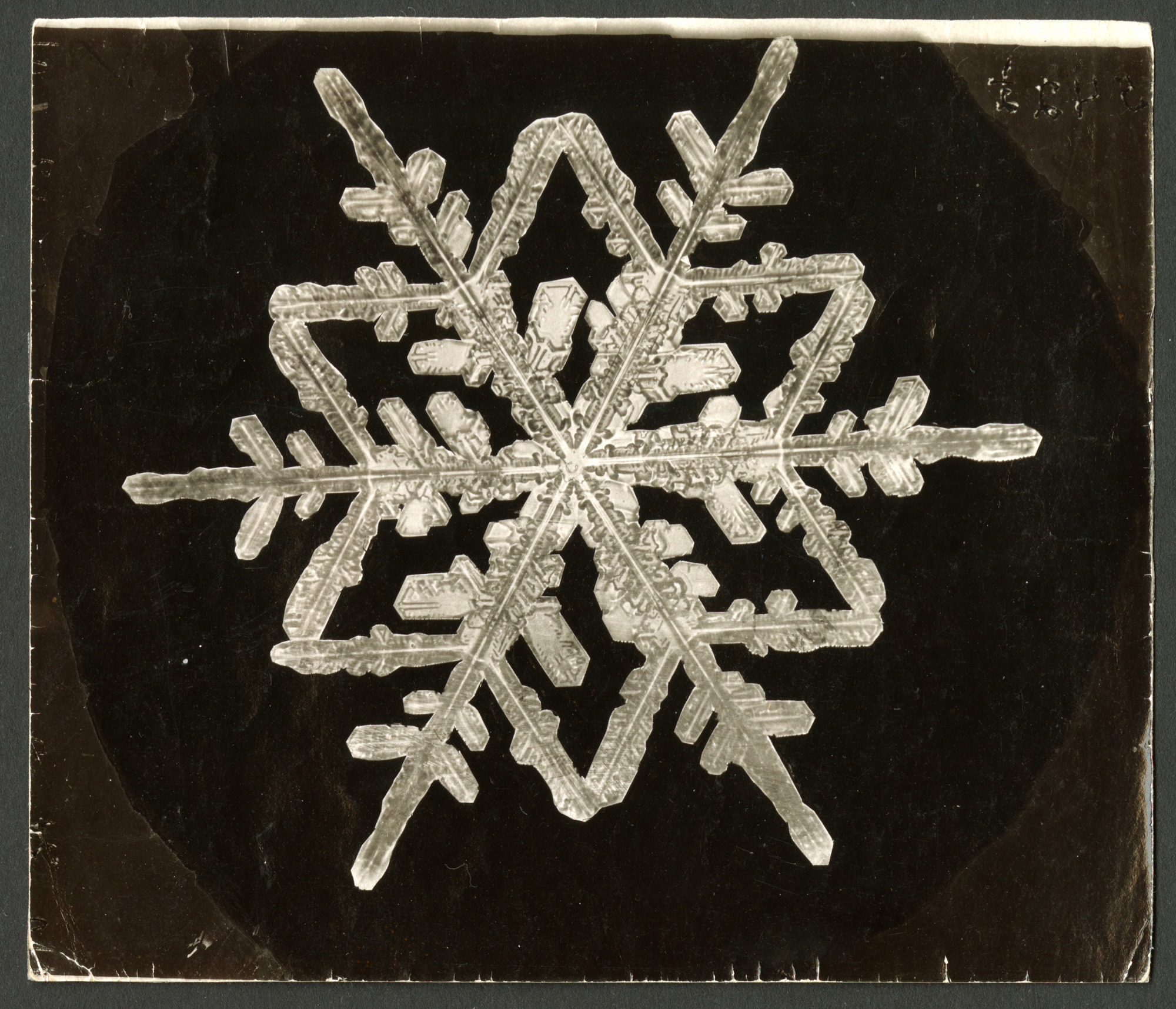 Wilson Bentley Photomicrograph of Fernlike Stellar Snowflake No. 542A