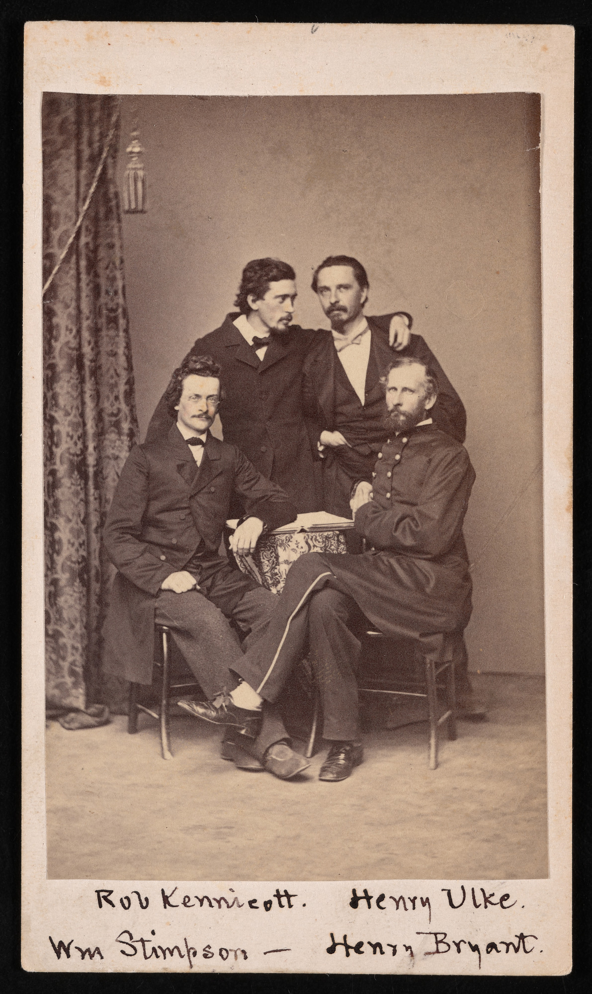 These four young naturalists lived in the Smithsonian Institution Building, or Castle, and often collected for the Smithsonian while on exploring expeditions in the mid-nineteenth century. Clockwise from upper left: Robert Kennicott, Henry Ulke, Henry Bryant and William Stimpson. They dubbed themselves the "Megatherium Club" after an extinct giant sloth that had been recently uncovered.