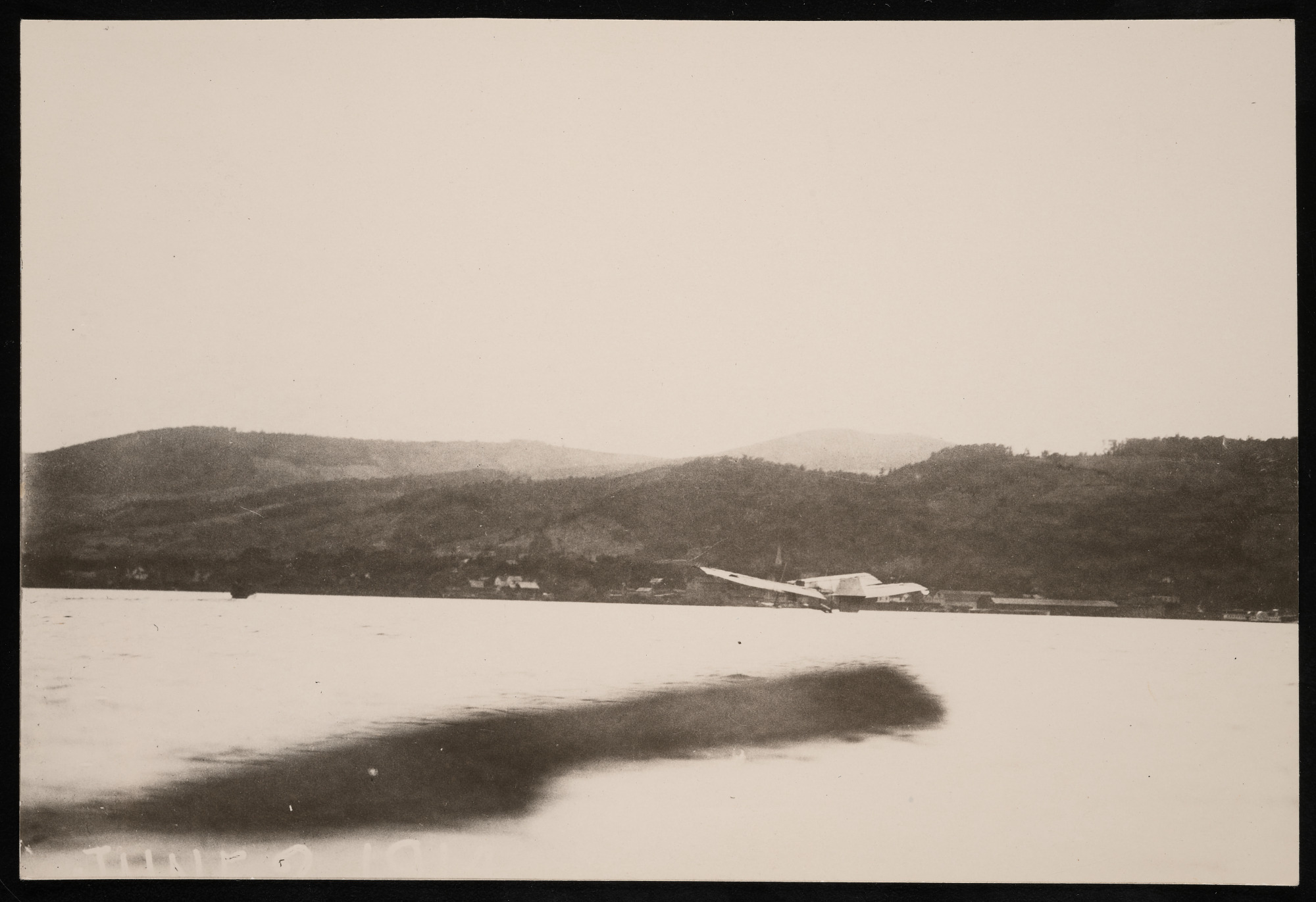 Flight of modified Langley aerodrome by Glenn Curtiss on Keuka Lake.