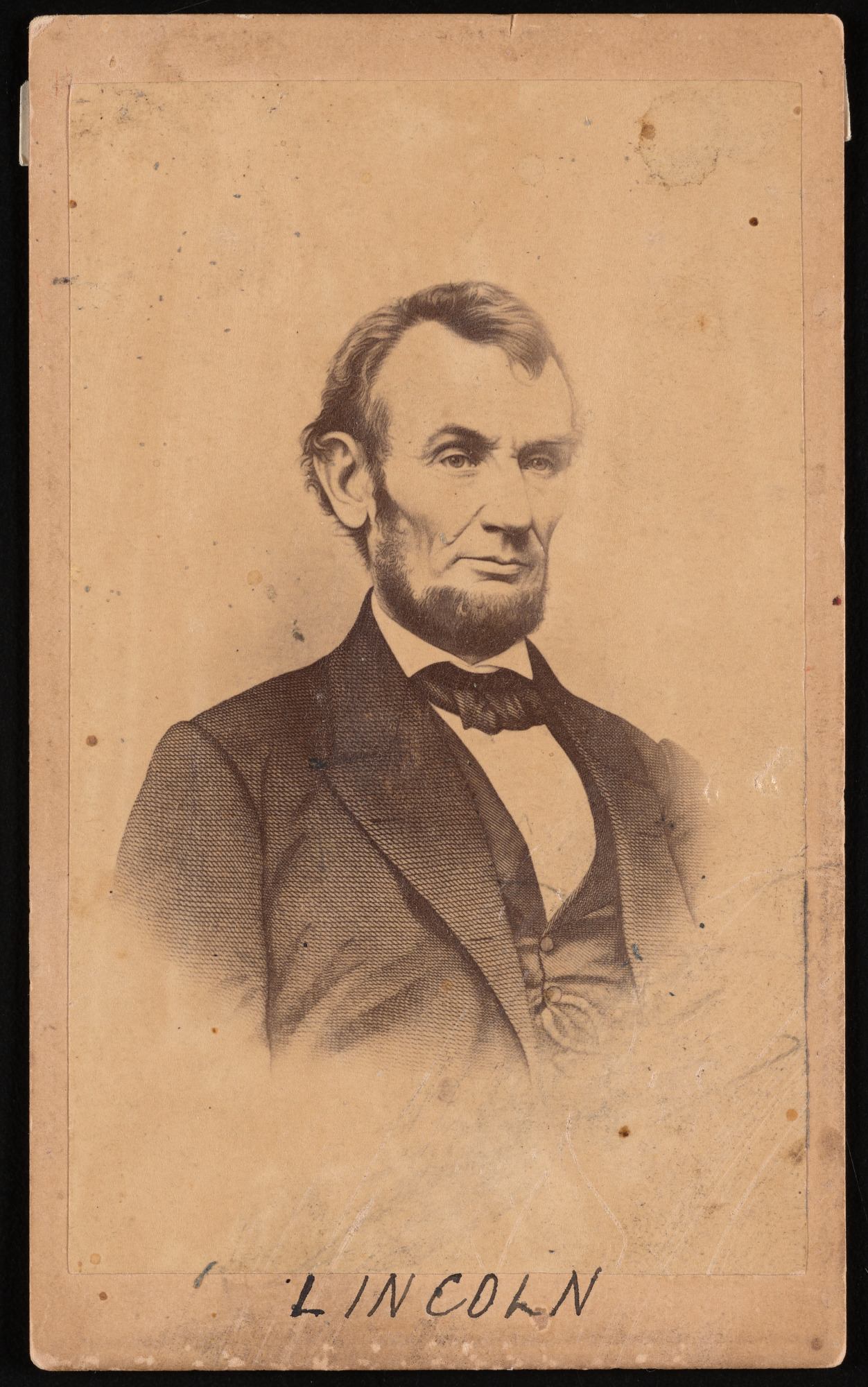Engraving of Abraham Lincoln based on photograph by Mathew Brady.