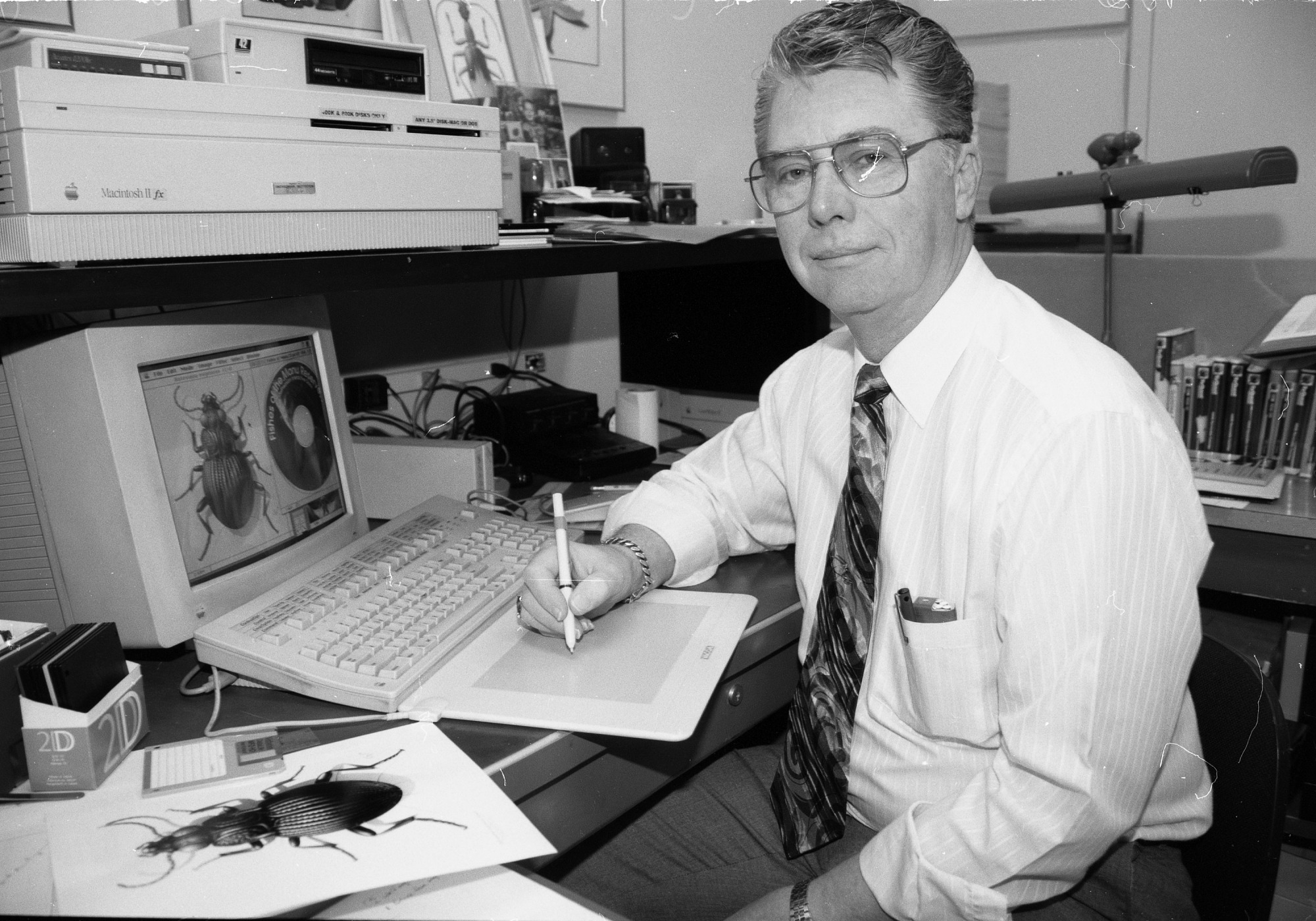 National Museum of Natural History scientific illustrator George Venable displays an illustration of a beetle that he drew using his computer.