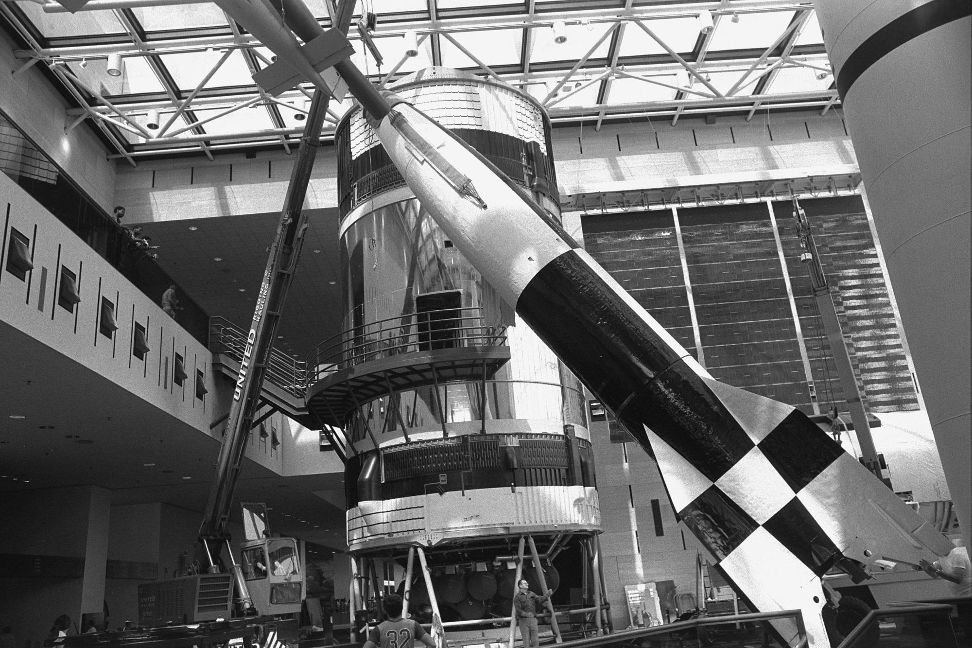 United Rigging installing V2 Rocket in the new National Air and Space Museum building, May 28, 1976.