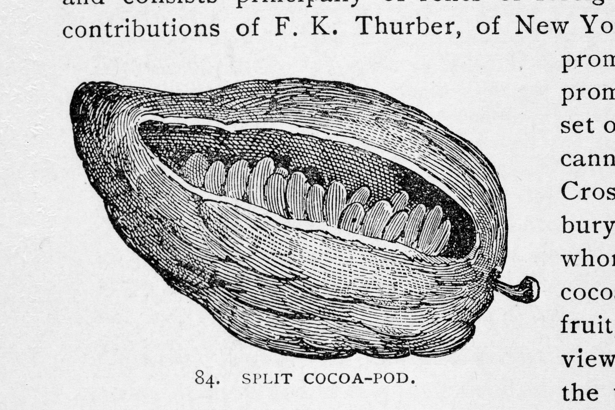 Illustration (Fig. 84) in "A Handbook to the National Museum under the direction of the Smithsonian Institution, Washington" of a split cocoa-pod.