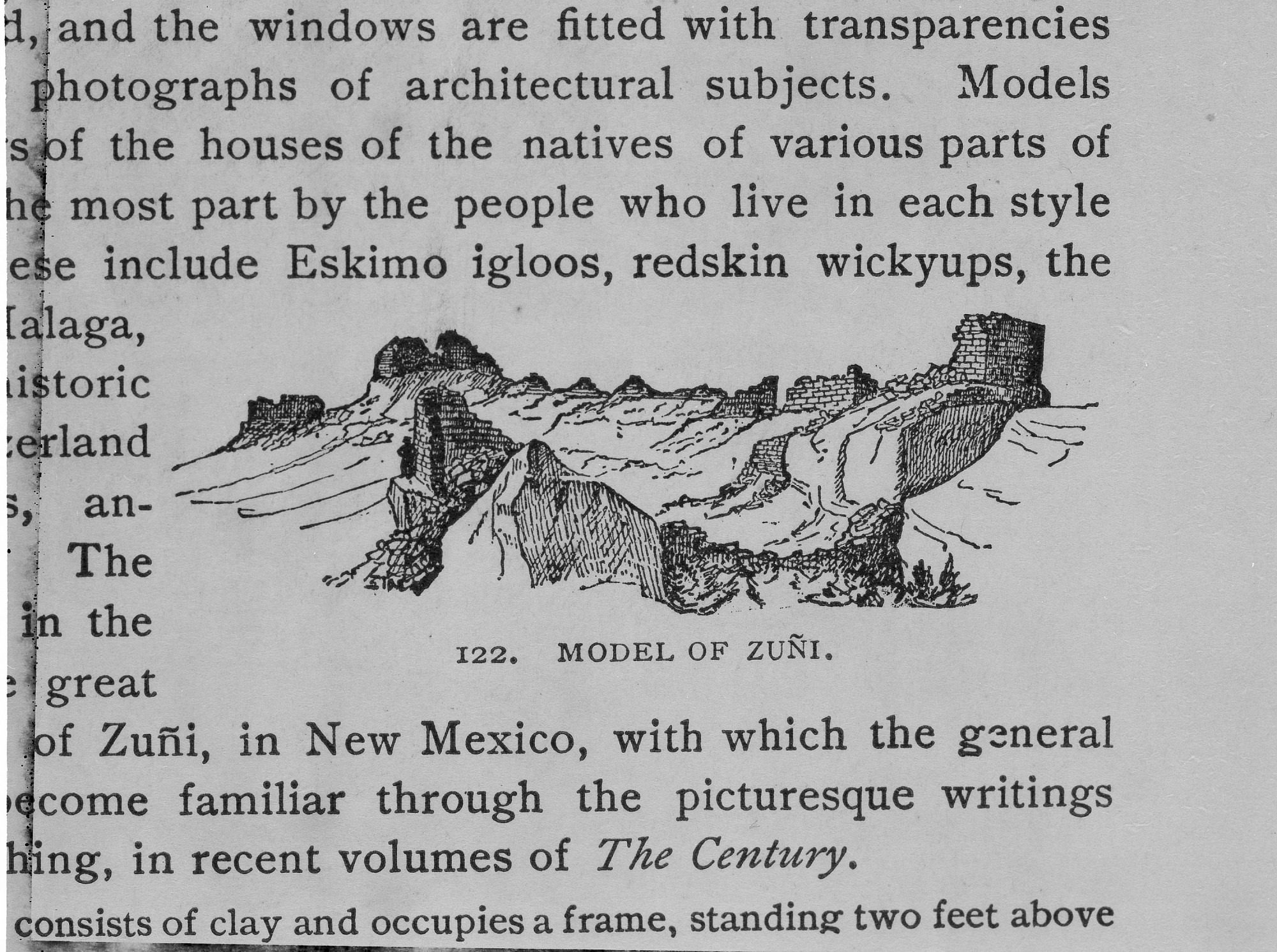 Illustration (Fig. 122) in "A Handbook to the National Museum under the direction of the Smithsonian Institution, Washington" of the model of Zuni, a pueblo settlement in New Mexico. This model was part of the Department of Architecture's exhibit at the United States National Museum.