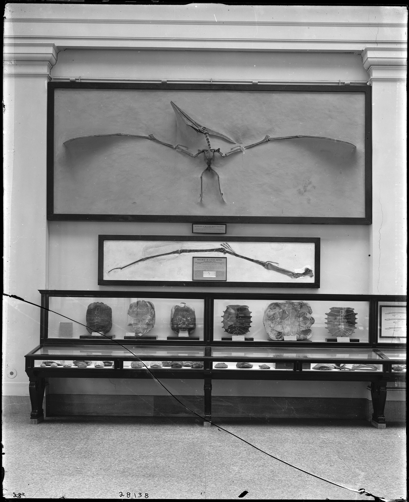 Skeleton of the flying reptile Pteranodon on exhibit as part of the Paleontology Exhibit in the National Museum of Natural History, pre-1963.