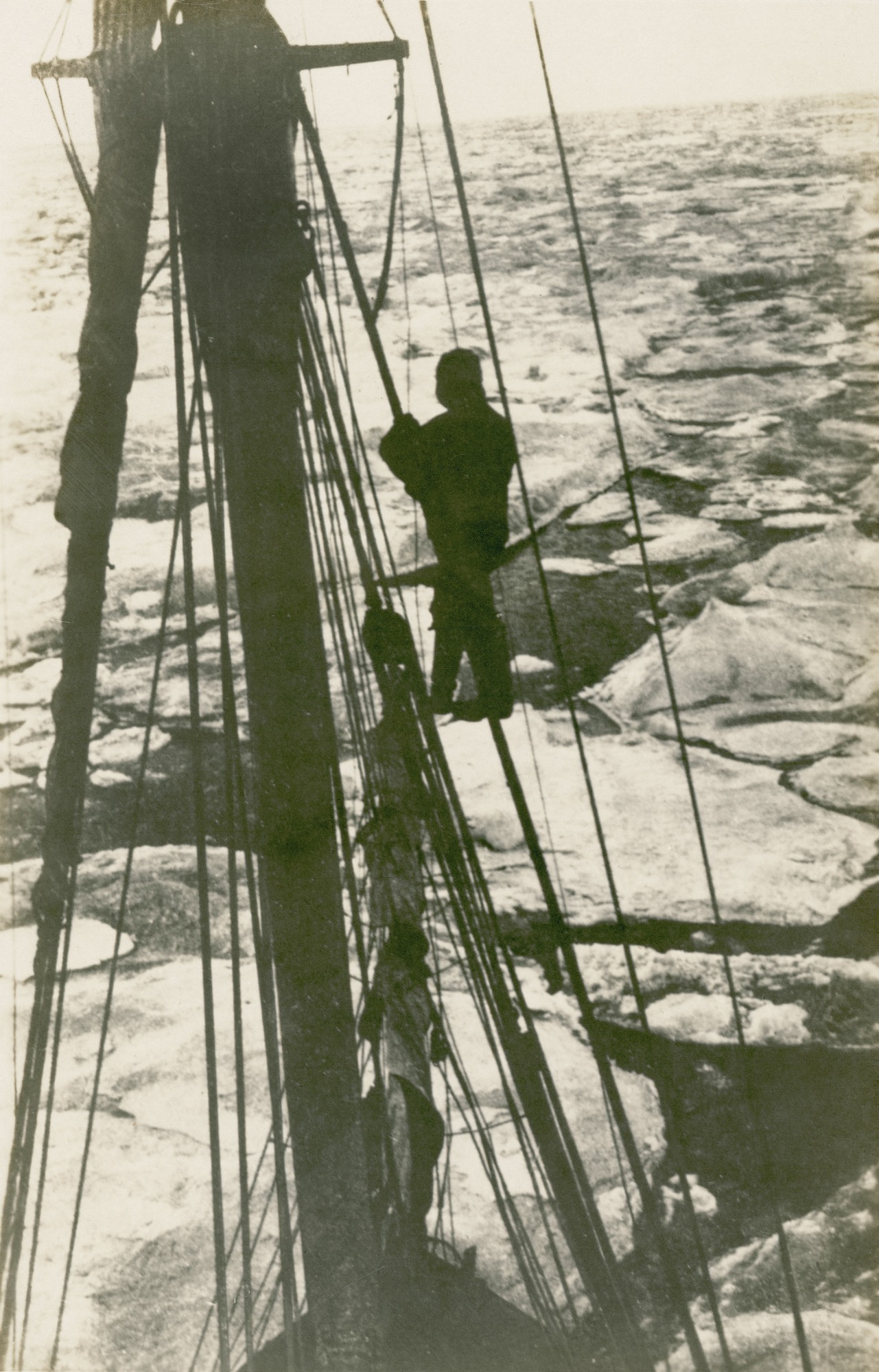 The Skongen, the Danish Fifth Thule Arctic Expedition's ship, is making slow progress through ice covered Hudson Bay.
