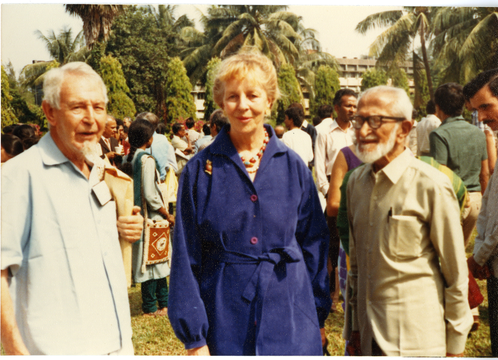From left to right, an unidentified individual, Mary Ripley and Salim Ali, probably at an ornithological meeting in India, c.1980s.