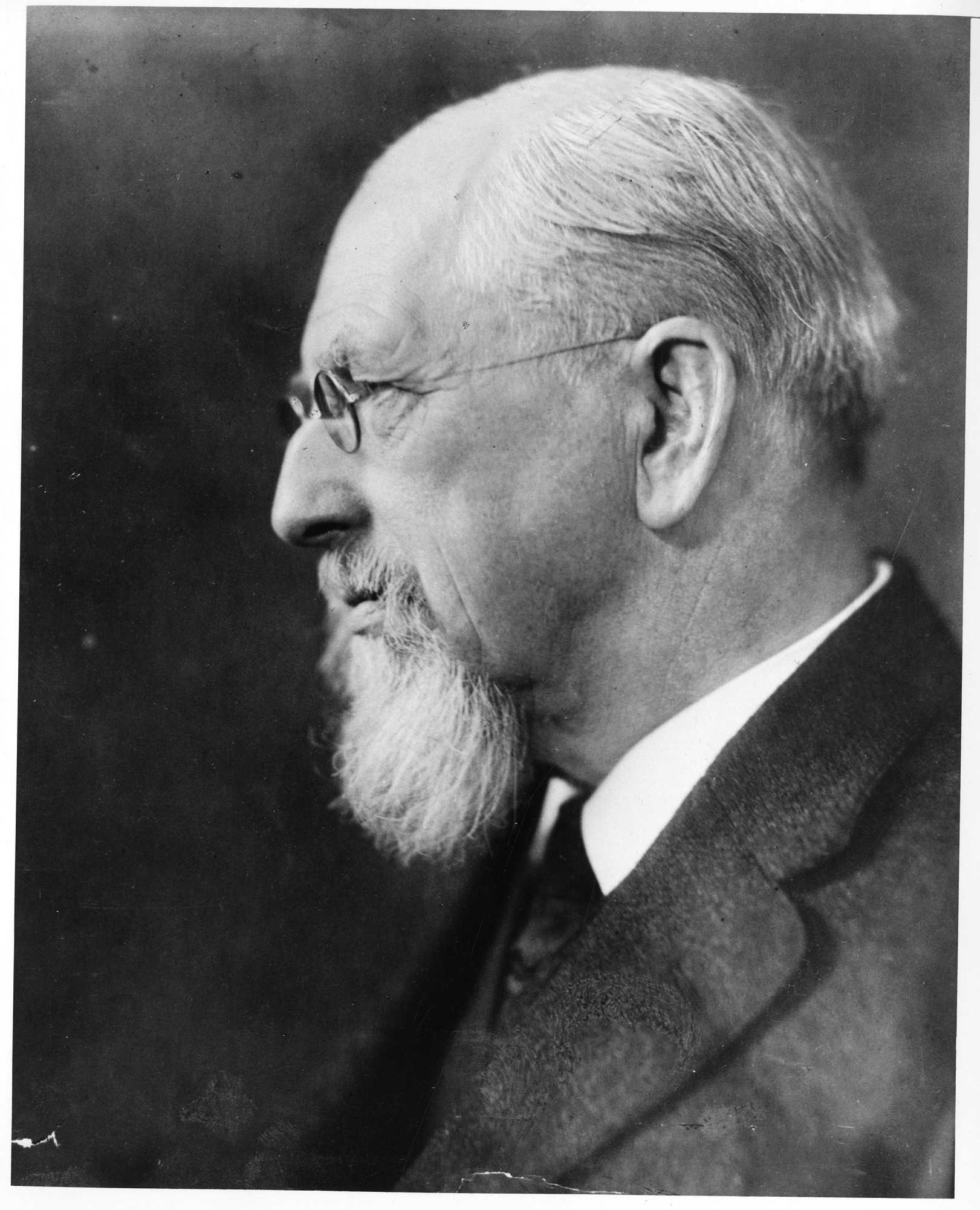 Image of William H. Dall, curator of echinoderms for the United States National Museum (now known as the National Museum of Natural History), shows Dall's profile looking to the left.