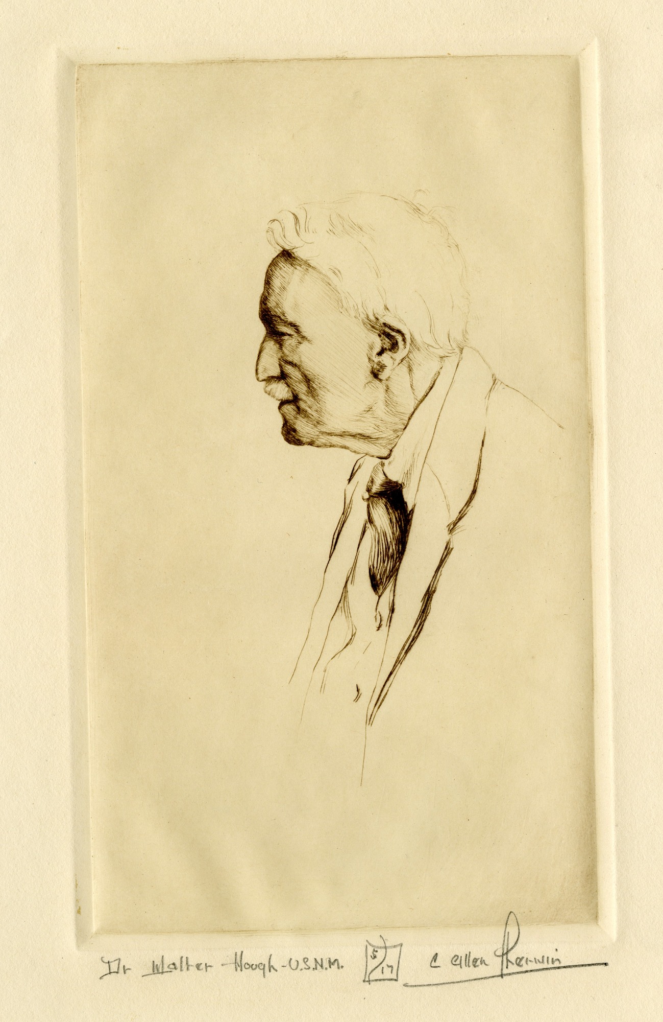 Drawing of Walter Hough by C. Allen Sherwin, anthropologist at the United States National Museum, now known as National Museum of Natural History. The artist's name is next to Hough's name on the drawing.