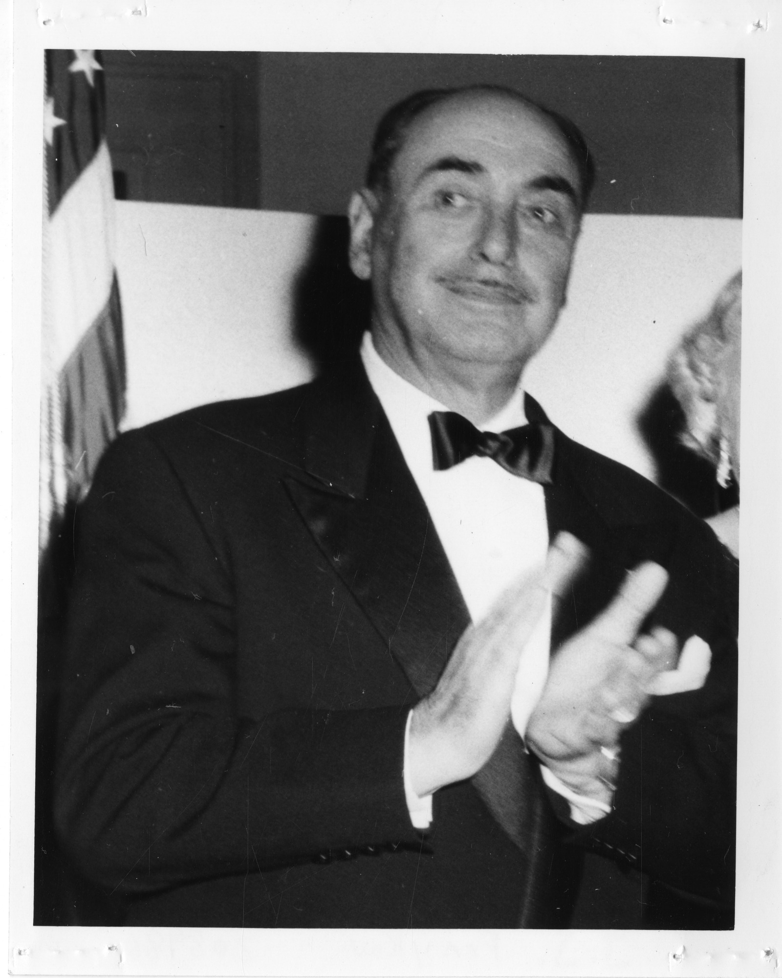 Josef Fénykövi claps at the unveiling of the elephant he donated to the Smithsonian Institution, in the rotunda of the Natural History Building.