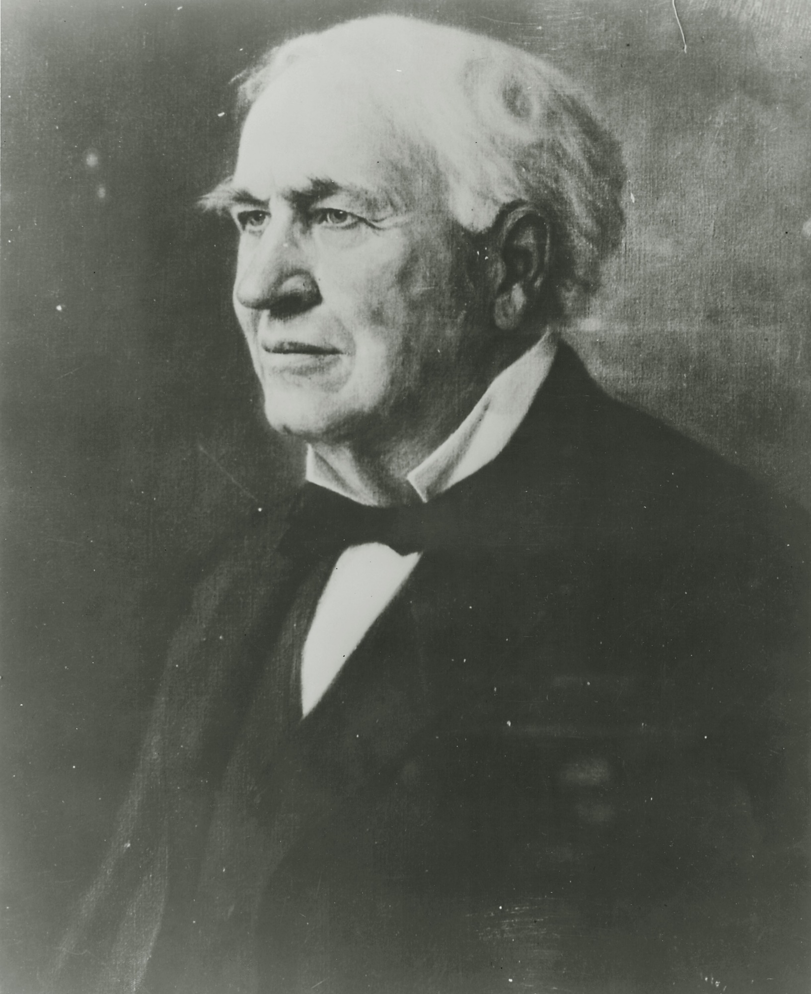 Portrait of Thomas Alva Edison (1847-1931), an American inventor, scientist, and businessman. He developed many devices that greatly influenced life around the world, including the phonograph, the motion picture camera, and a long-lasting, practical electric light bulb. In addition, he created the world's first industrial research laboratory. Edison is most famously known for his invention of the electric light bulb.