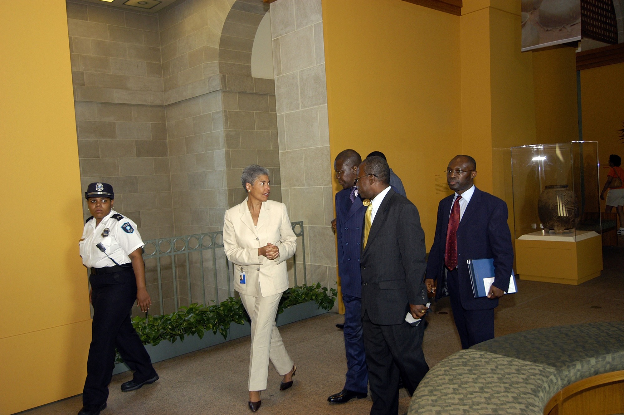 The Asantehene or Ruler of the Asanti Kingdom visits the National Museum of African Art, accompanied by director Sharon Patton.