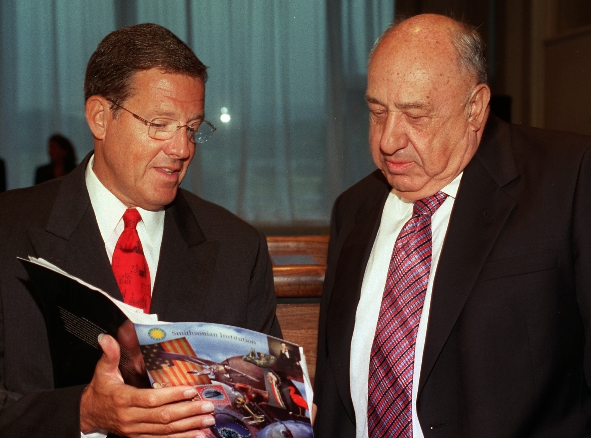 Kenneth E. Behring (right) at the press announcement of his gift of $80 million to the Smithsonian's National Museum of American History. With Smithsonian Secretary Lawrence Small (left).