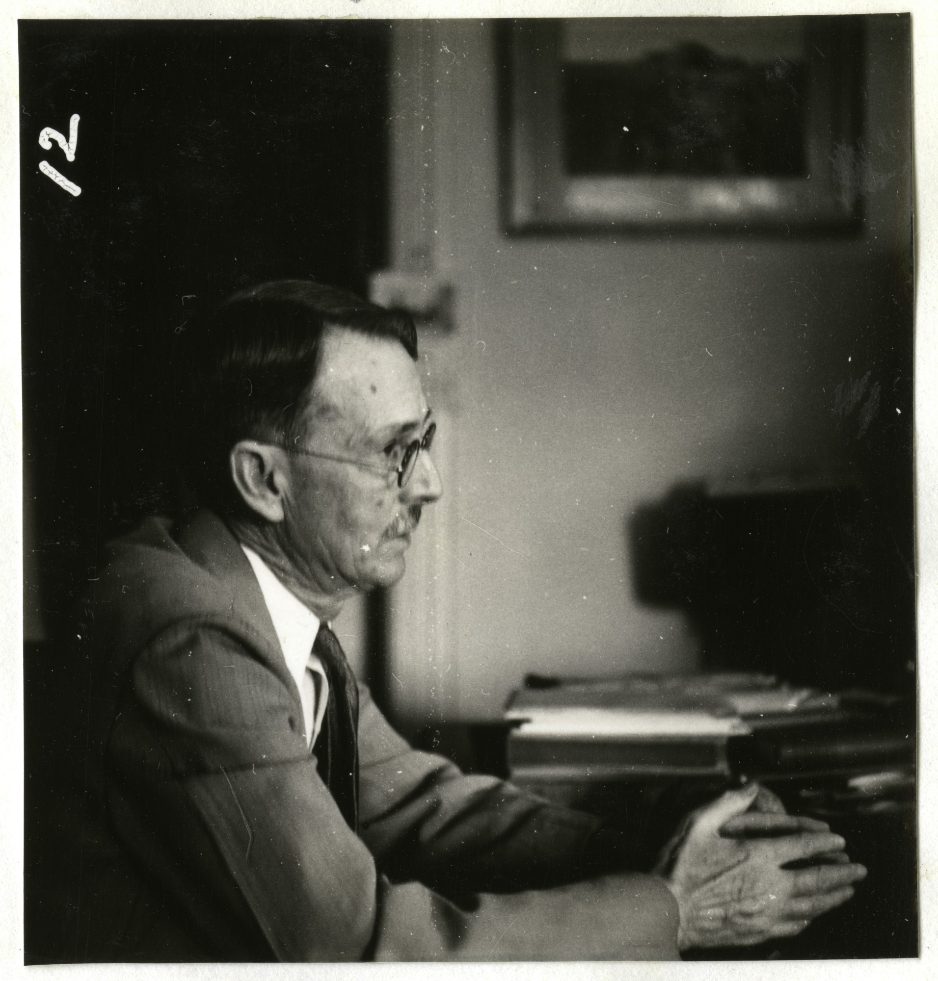 Assistant Librarian of the Smithsonian Libraries William L. Corbin, 1925-1942, is seated at a desk.