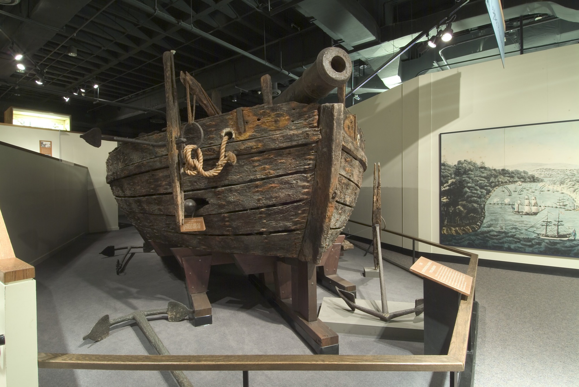 Image of the Gunboat "Philadelphia" on display in the National Museum of American History. The American gunboat "Philadelphia" sank into Lake Champlain in October 1776, during a naval battle against the British in the American Revolution. Visible is the 12 pounder gun mounted at the bow. She was raised in 1935 with much of its equipment intact and came to the Museum in 1964, complete with the 24-pound ball that sent the gunboat to the bottom.