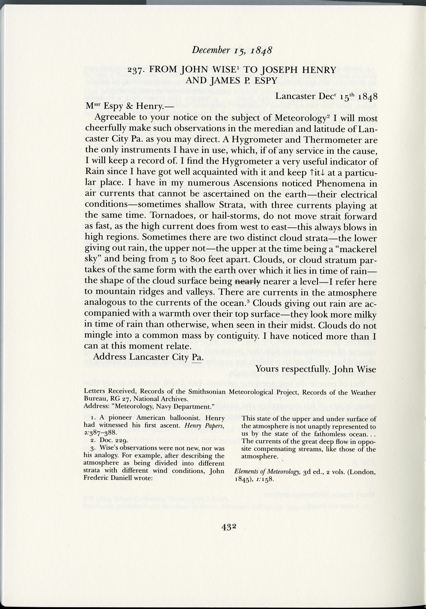 Citation: Rothenberg, Marc, et al, eds., The Papers of Joseph Henry, Volume 7, The Smithsonian Years: January 1847-December 1849 (Washington: Smithsonian Institution, 1996), 432