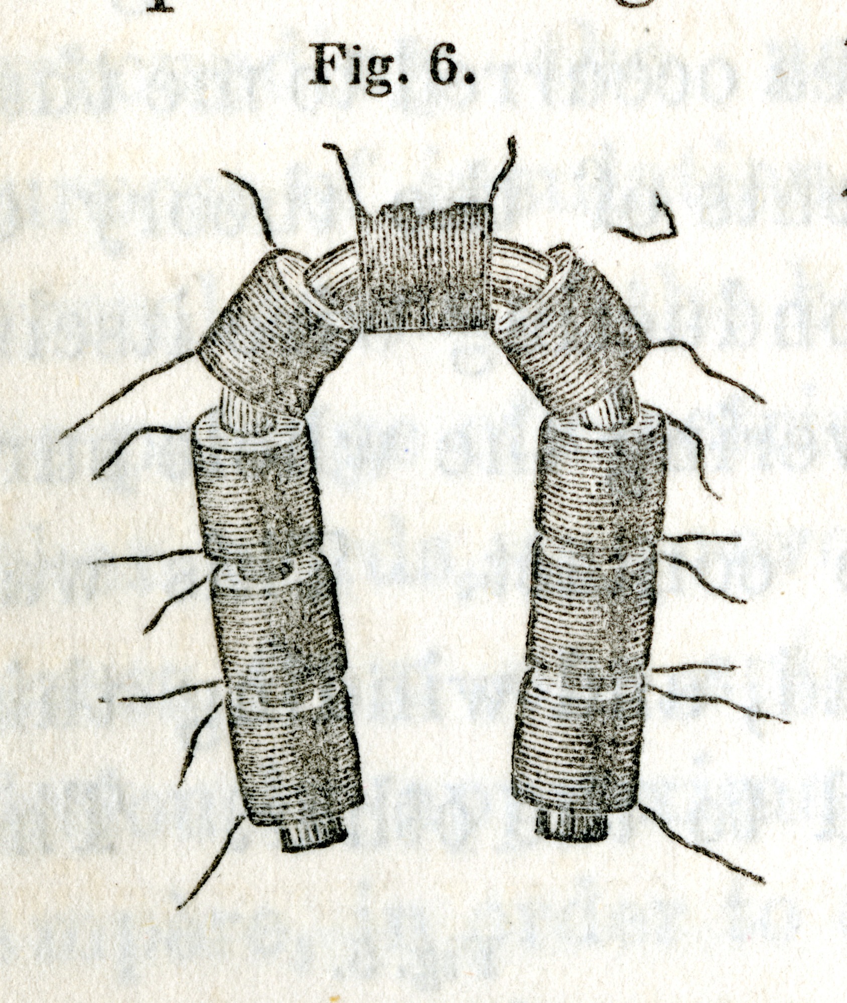 Sketch of Joseph Henry's more powerful magnet. Henry, first Secretary of the Smithsonian Institution, was the first to construct an electromagnet formed by tightly wrapping multiple coils of an insulated conducting wire around an iron bar. This technique improved upon the earlier work of William Sturgeon, increasing the magnetic power.