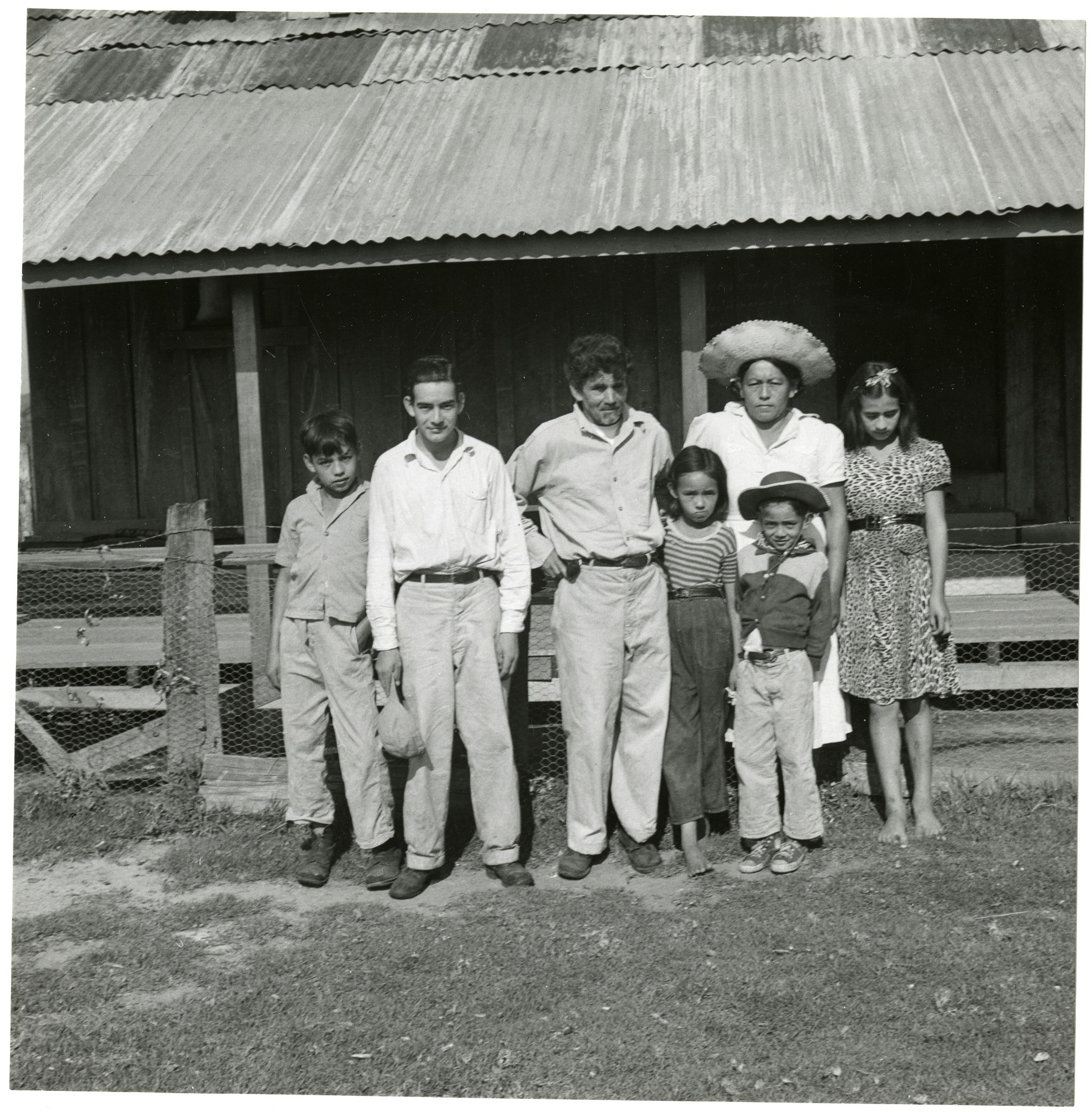 In Santa Clara, Chiriquí, Panama, the family of Alois S. Hartmann stand outside the front of a building.