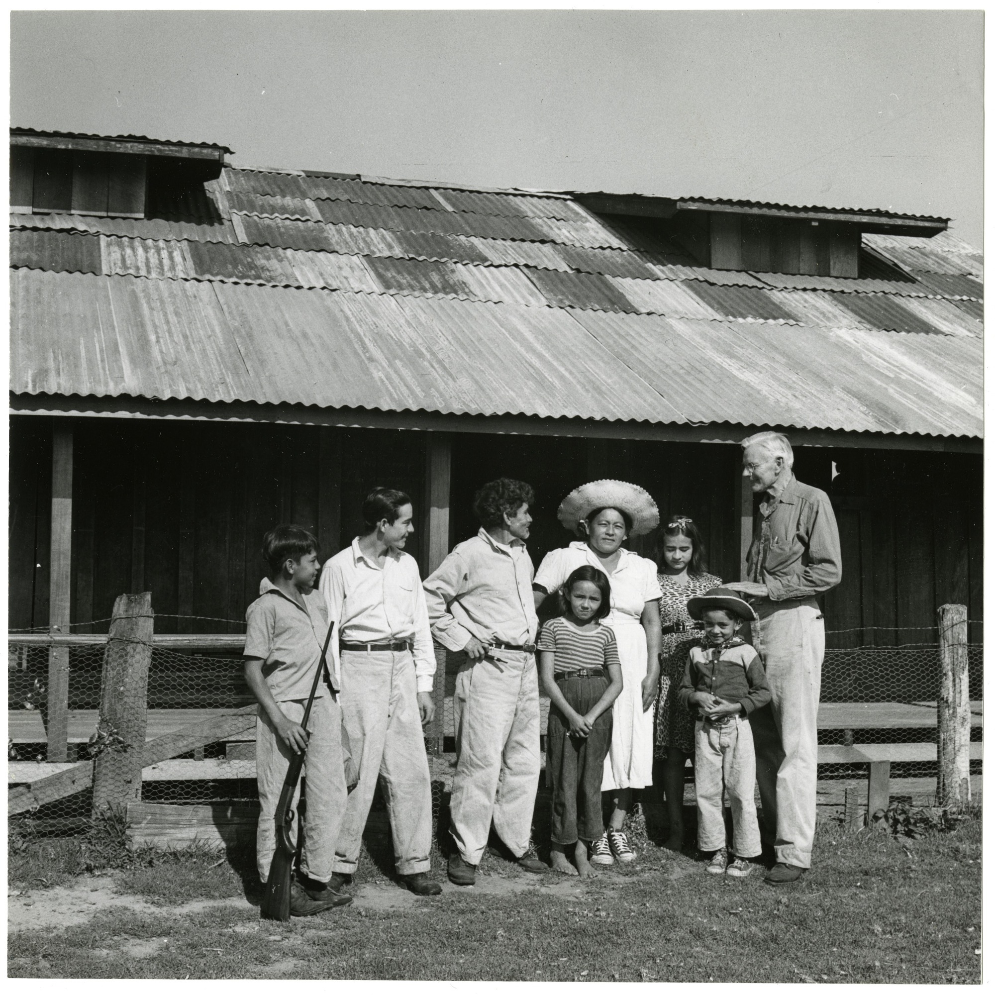 In Santa Clara, Chiriquí, Panama, sixth Secretary Alexander Wetmore stands outside a building with the family of Alois Hartmann.