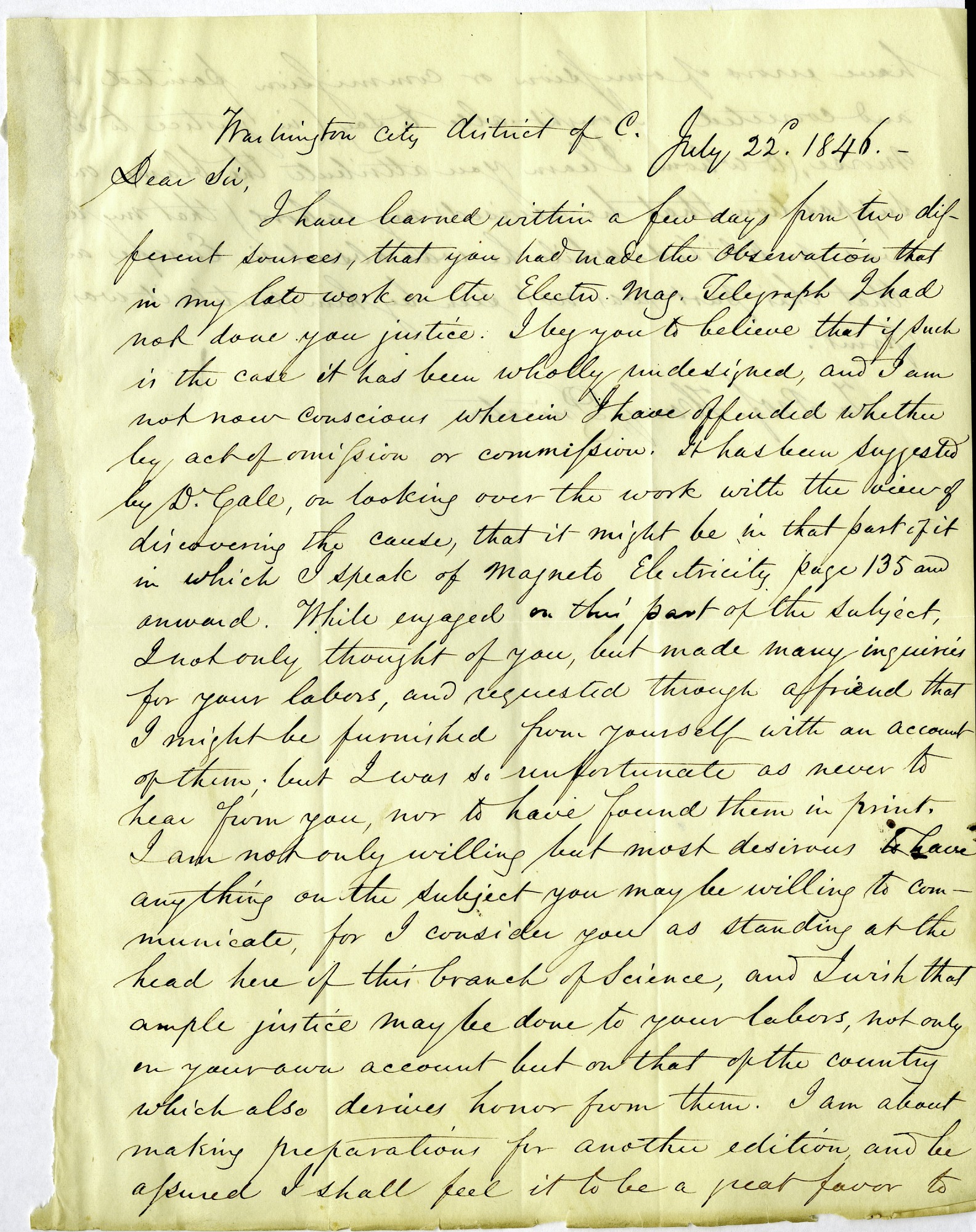 Letter from Samuel Morse and Alfred Vail to Joseph Henry, July 22, 1846