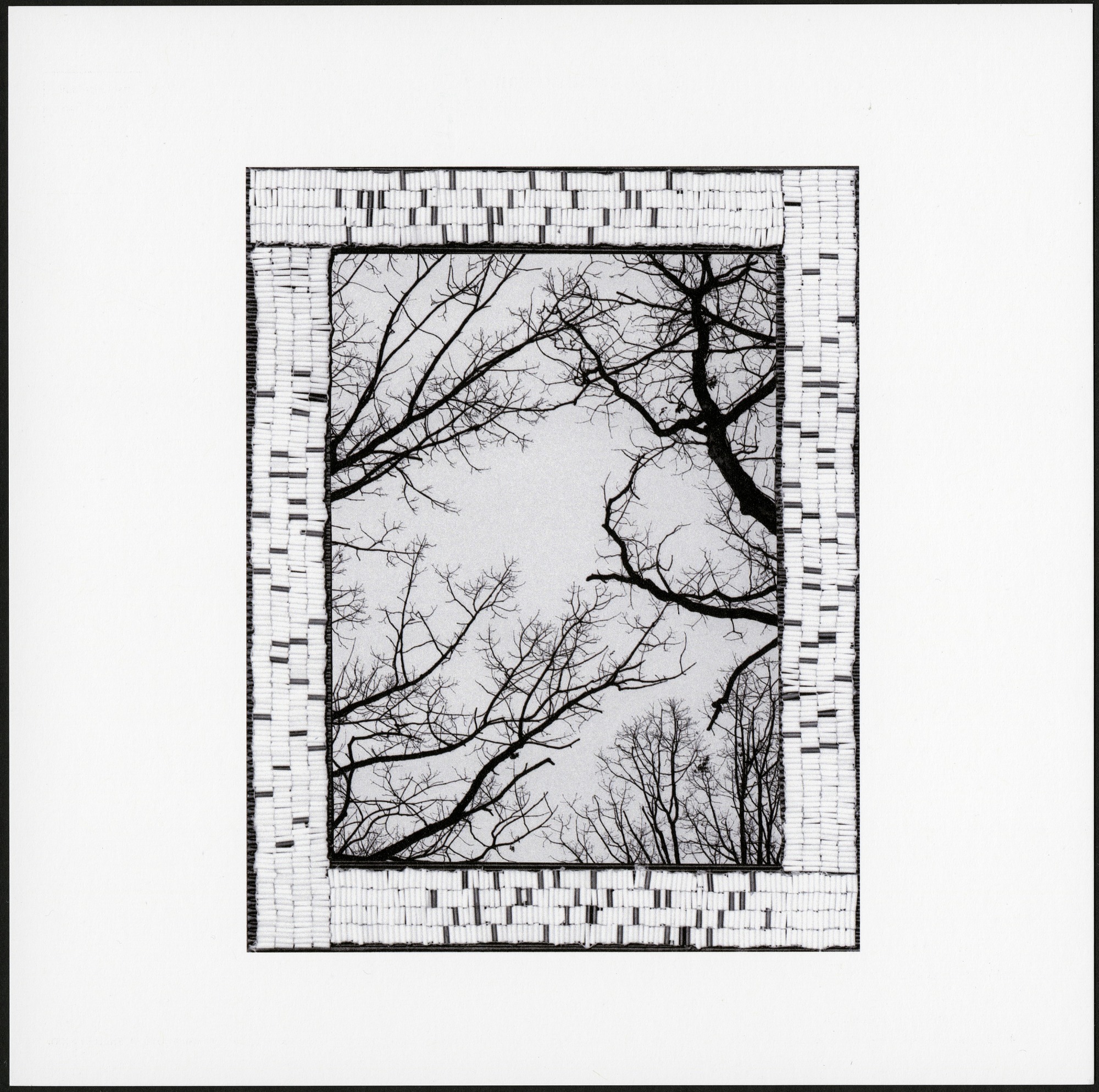 Color postcard advertising the "Continuum: 12 Artists" exhibit at the National Museum of the American Indian with "Ghosts, Girls, Grandmas" by Shelley Niro on the front. The front of the postcard has a white border. The postcard is unused, but the message side has printed information about the exhibit and featured artwork on the card.