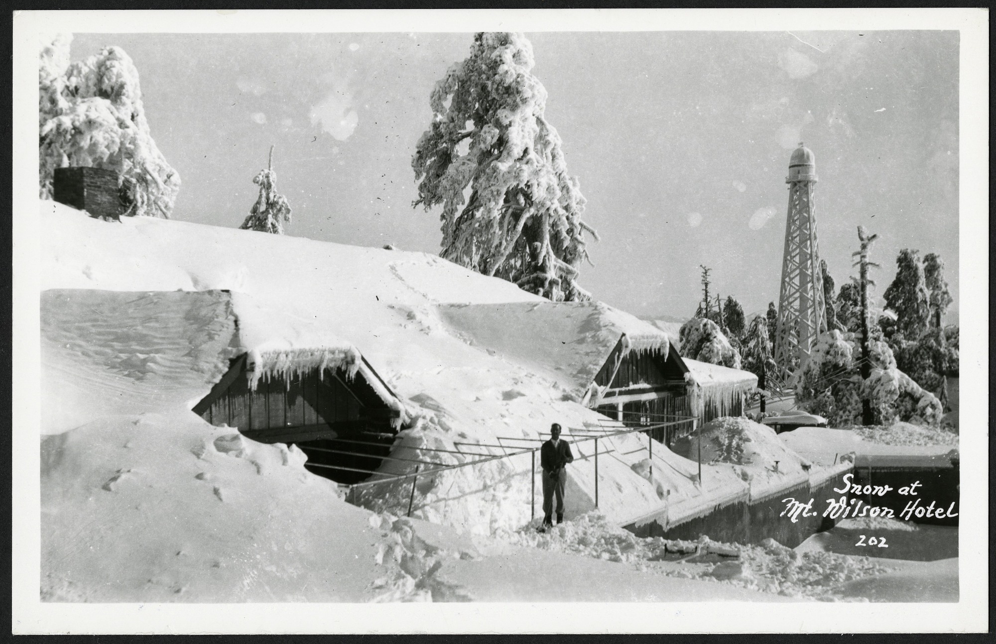 Citation: Smithsonian Institution Archives, Record Unit 95, Box 27, Folder: Charles Greeley Abbot: Snow at Mt. Wilson Hotel (1)