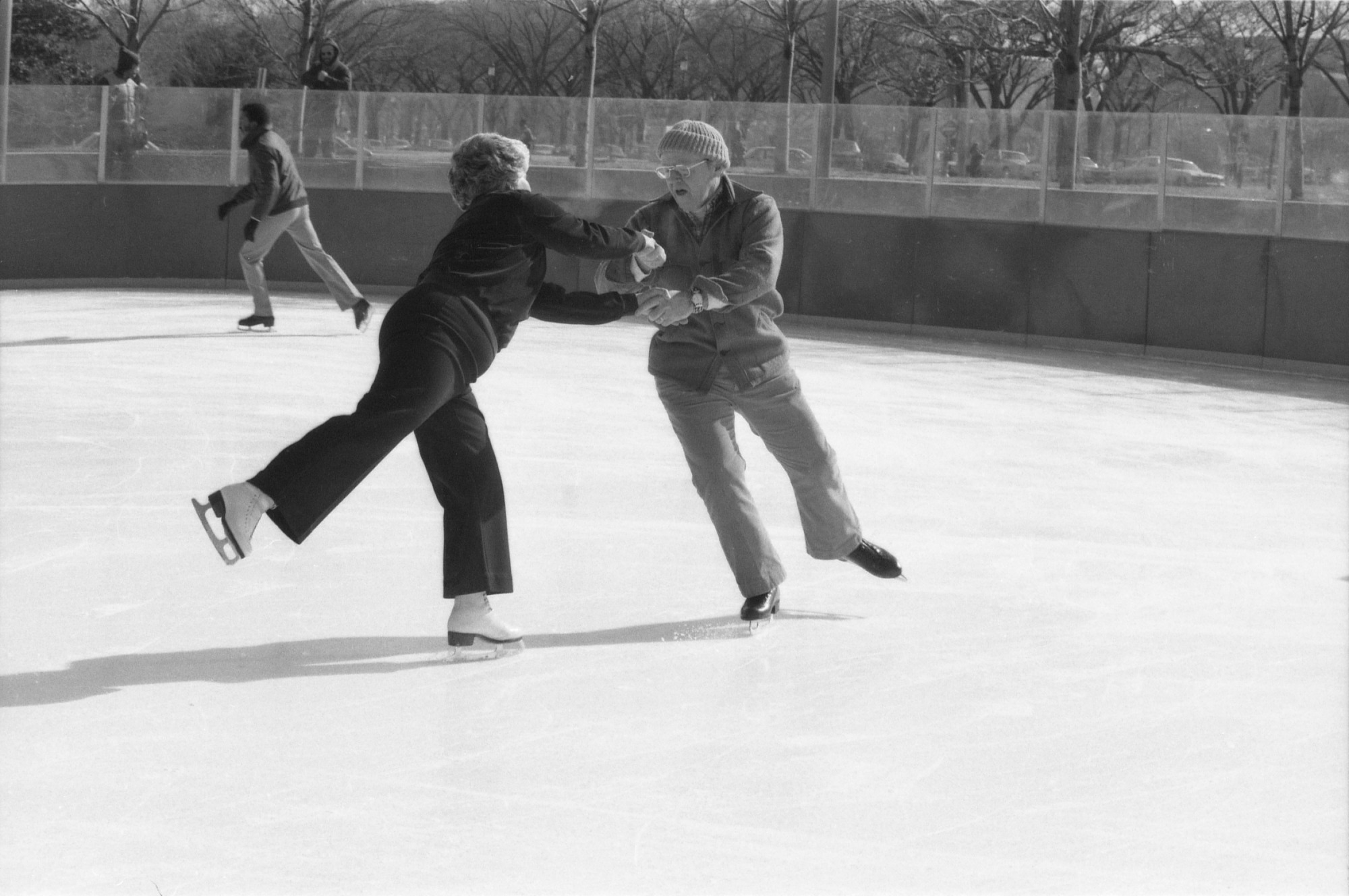 Phyllis Spangler, a Museum Technician for the Medical Entomology Project of the National Museum of Natural History's Department of Entomology, and her husband Paul Spangler, an Associate Curator in the National Museum of Natural History's (NMNH) Department of Entomology, skate on the National Gallery of Art's Sculpture Garden Ice Rink.