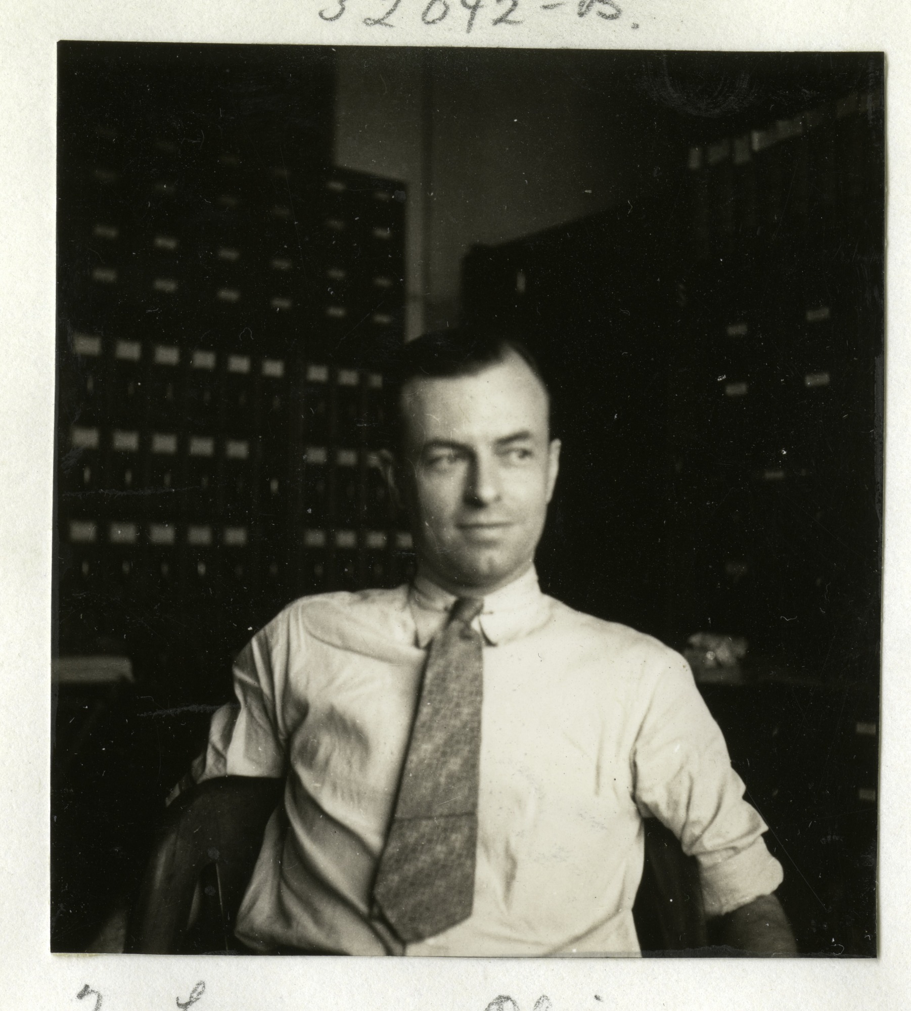 Mr. Lawrence L. Oliver, property clerk and later Superintendent of Buildings for the Department of Buildings and Labor (now known as the Office of Facilities Engineering and Operations), seated in an office.