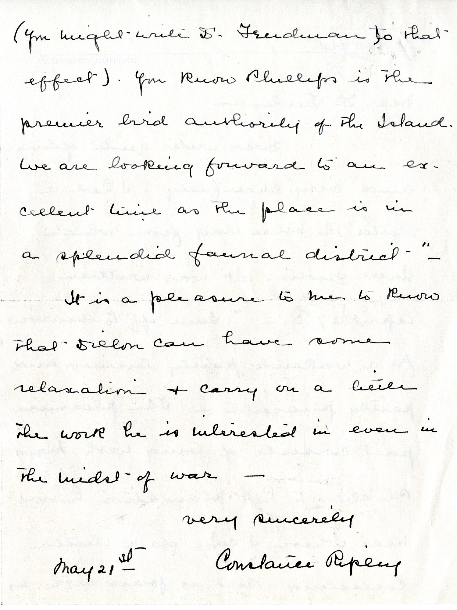 Letter from Mrs. Constance Ripley to Herbert Friedmann, page 2