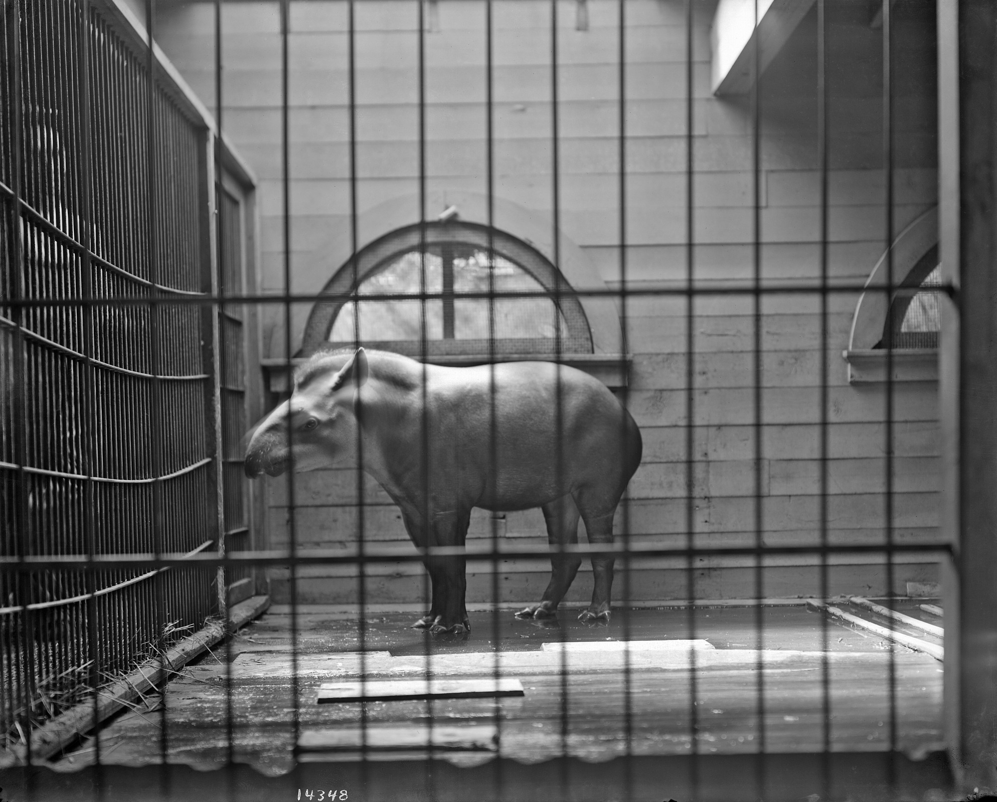 Tapir inside the "temporary" wooden wing of the original Animal House (Lion House) of the National Zoological Park.
