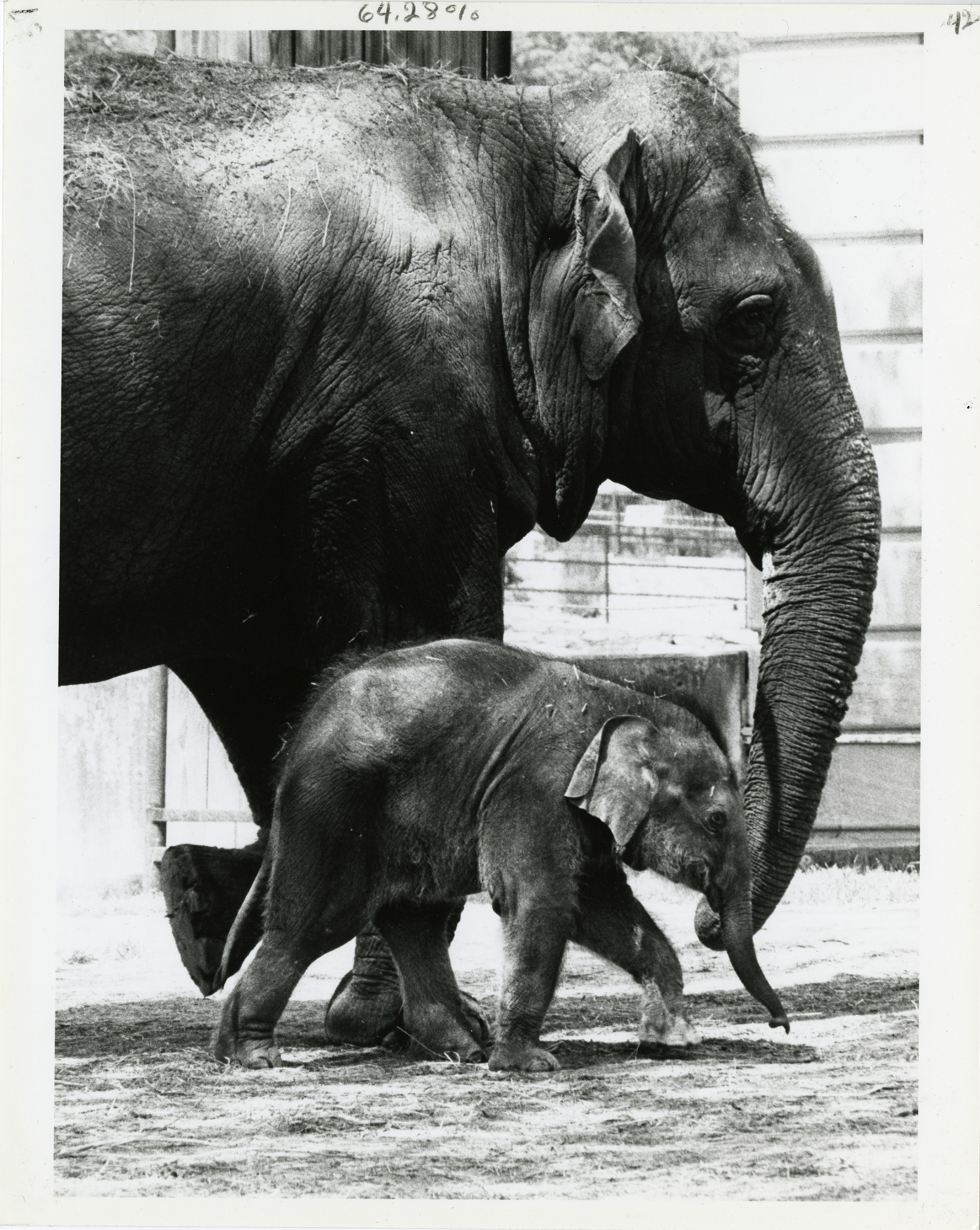 Kumari and her mother Shanthi, take a companionable stroll in the National Zoo's elephant enclosure. Shanthi is a Sri Lankan elephant and was the first elephant to reproduce at the Zoo. At 6 months, Kumari weighed in at 416 pounds and was eating solid food.