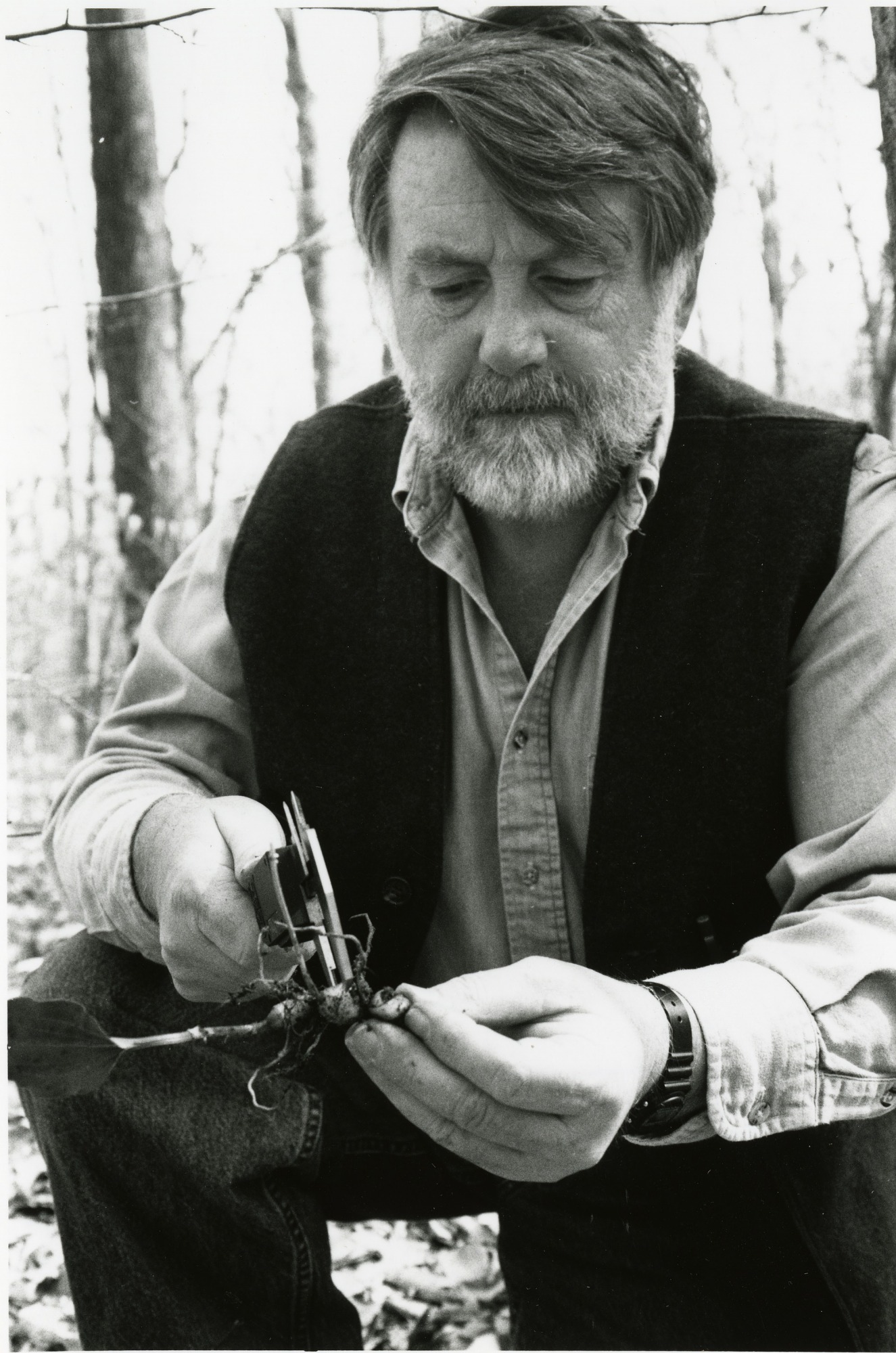 Dennis Whigham, a plant ecologist at the Smithsonian Environmental Research Center, measures an orchid's roots. He is studying cranefly, coral-root and showy orchids--three terrestrial species that grow wild in mature forests in Eastern North America.
