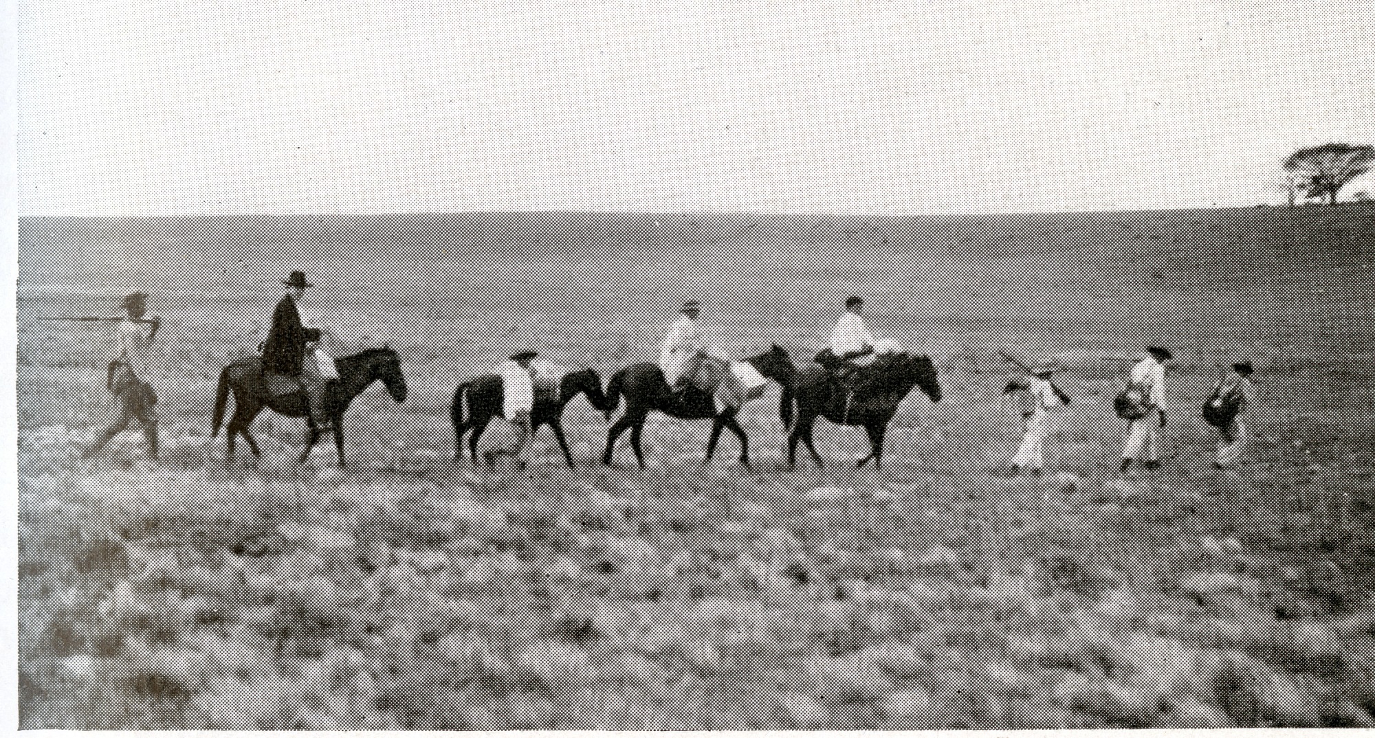 The field-party, some on horseback and others walking, cross the Savannas northwest of Chepol, Panama, on the way to the mountains at the head of Chagres River.